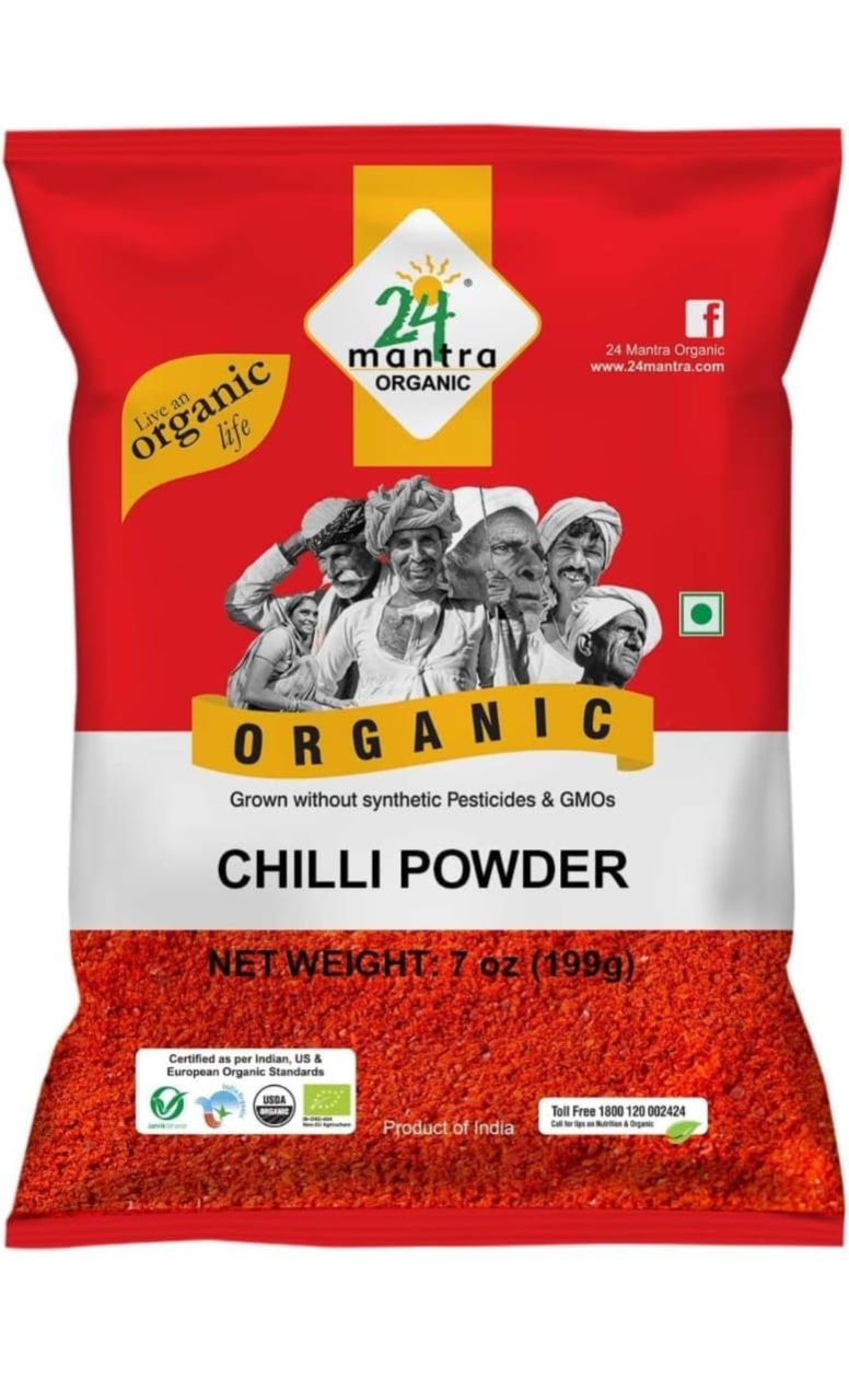 24 Mantra Organic Chilli Powder/Laal Mirch/Karam Podi - 200gms | Pack of 1 | 100% Organic | Chemical Free & Pesticides Free | Rich Flavour | Unadulterated | Profit and Grocery