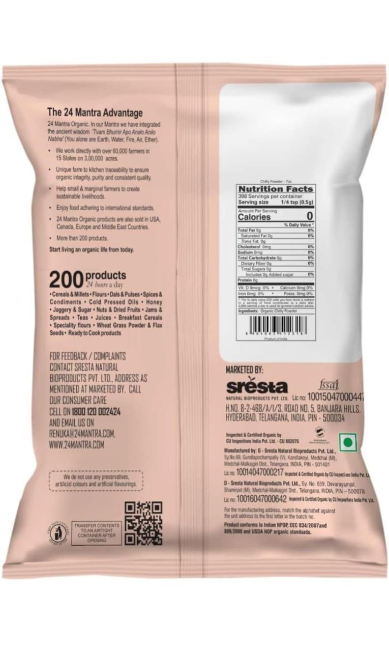 24 Mantra Organic Chilli Powder/Laal Mirch/Karam Podi - 200gms | Pack of 1 | 100% Organic | Chemical Free & Pesticides Free | Rich Flavour | Unadulterated