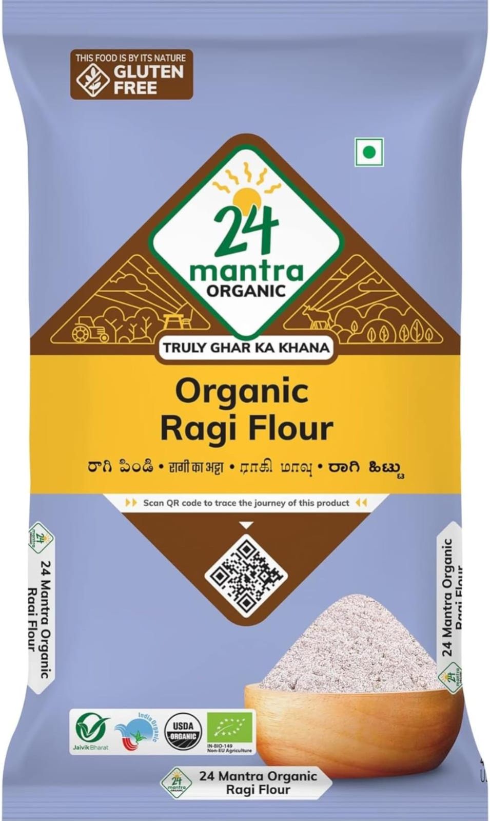 24 Mantra Organic Ragi Flour/Finger Millet/Nachni Flour - 500gms | Pack of 1 | Chemical Free & Pesticides Free | Naturally Gluten-free | Profit and Grocery