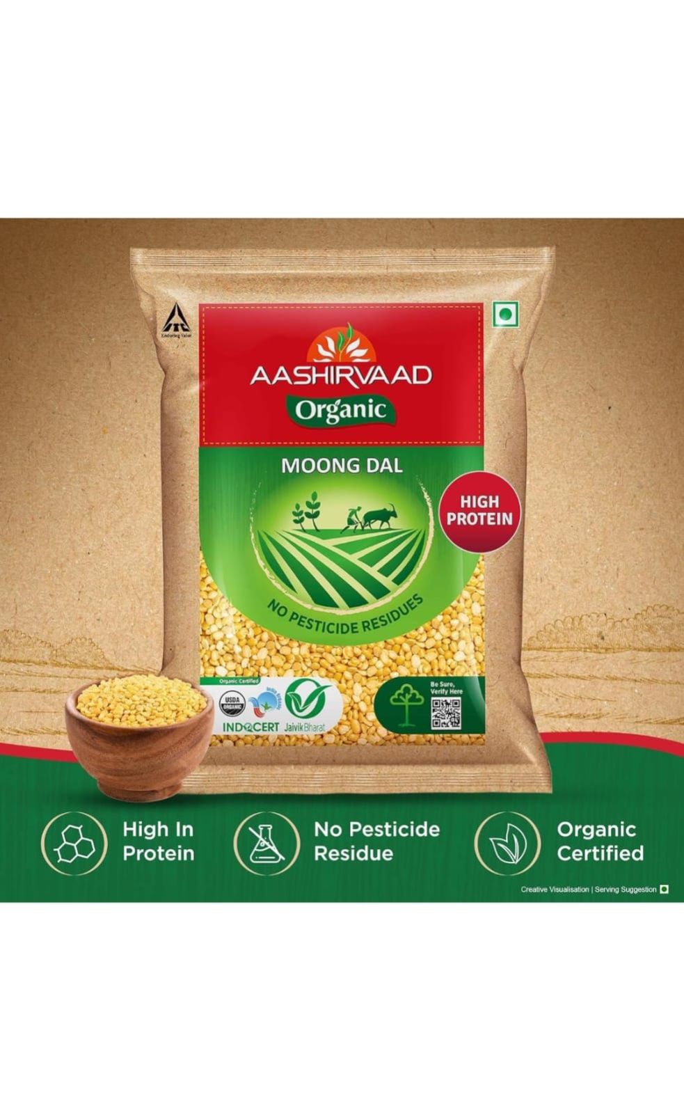 Aashirvaad Organic Moong Dal, 500 g, 100% Organic Moong Dal, Rich in Protein | Profit and Grocery