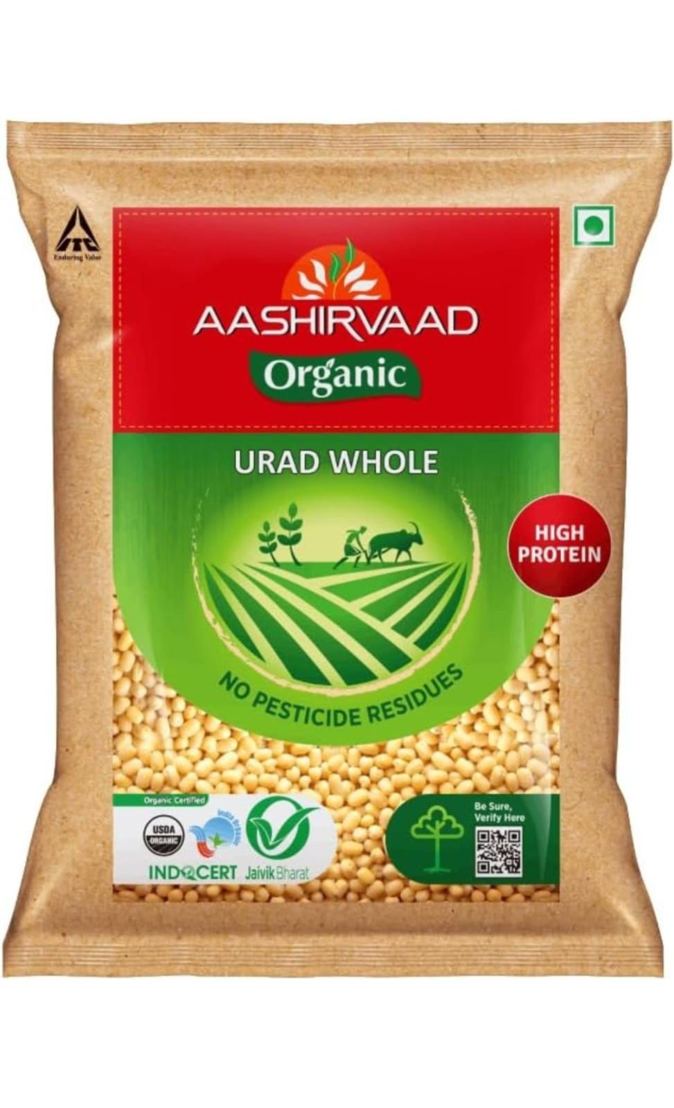 Aashirvaad introduces Organic Urad Whole Dal which is Certified Organic. At Aashirvaad we take pride in ensuring our consumers get quality products. Our range of organic products have been expertly sourced and hygienically packed so that you get great taste and nutrition.
