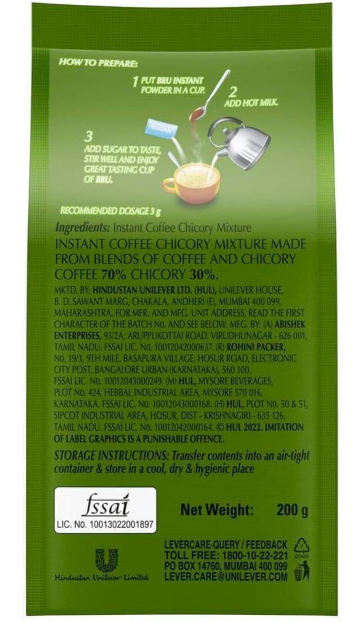 BRU Instant Coffee was launched in 1968 and was India’s first Coffee - Chicory based instant coffee. It has remained India’s beloved & trusted coffee brand since then. With over 50+ years experience in the world of coffee, Bru strives to bring the best coffee experience to you! We understand that great coffee starts at source. That’s why we source the finest coffee from South Indian Plantations. The coffee beans are first roasted to perfection then the new & enhanced process ensures that the fresh coffee aroma is preserved so that you can enjoy the signature Bru aroma with every cup. Bru Instant has a characteristic caramellic & chocolaty taste which gives you a delicious cup of hot & refreshing cold coffee! Walk with us through South Indian plantations with our range of Bru Instant! ABOUT BRU A part of Hindustan Unilever Ltd., BRU Coffee is India's largest and favourite coffee brand that offers a wide variety of coffee products. Since 1968, BRU has been a pioneer in bringing the authentic taste of South Indian coffee to Indian consumers. The best coffee beans are selected from across innumerable coffee trails and freshly roasted, to serve a great cup of rich, irresistible coffee.