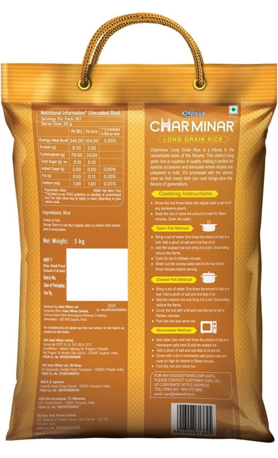 As brand, Kohinoor Charminar is a well-defined blend to delight you and your family at every meal and every occasion. Carefully processed in a world class manufacturing facility for daily consumption, its long and delicate grains are processed with expertise to preserve their distinct aroma. Charminar Long Grain rice delivers a flavorful and wholesome meal at an price, in line with the brand’s mission of making everyday meals memorable. Ideal for occasions like banquets, marriages, parties etc. where rice and pulao are served, these value rice grains help you bring home the flavor of basmati and also ensures that every dish you cook has a touch of royalty. We at Kohinoor, go the extra mile to give you the best - from selecting the fields through a scientific approach to choosing the finest rice grains - we pursue excellence at every step. And we don’t export, reserving the best quality for the Indian subcontinent. After all, Kohinoor is committed to the tradition of bringing authentic Indian flavors to your table. Kohinoor Charminar Rice invites connoisseurs like you to indulge in the magnificent experience and make every meal moment truly special.