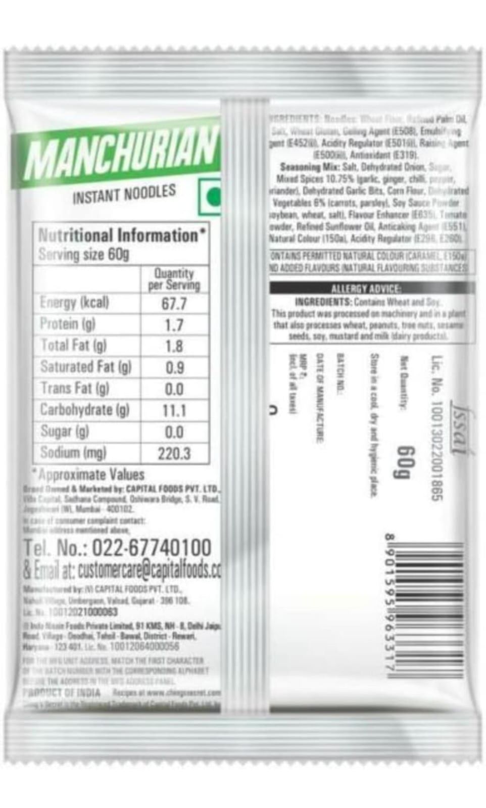 Ching's Secret Instant Noodles - Manchurian, Vegetarian 60 Gram