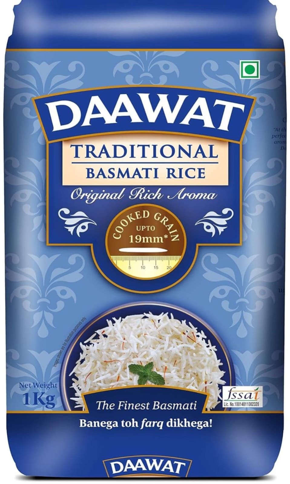 Daawat Traditional, Perfectly Aged Premium Basmati Rice with Rich Aroma, 1 Kg | Profit and Grocery