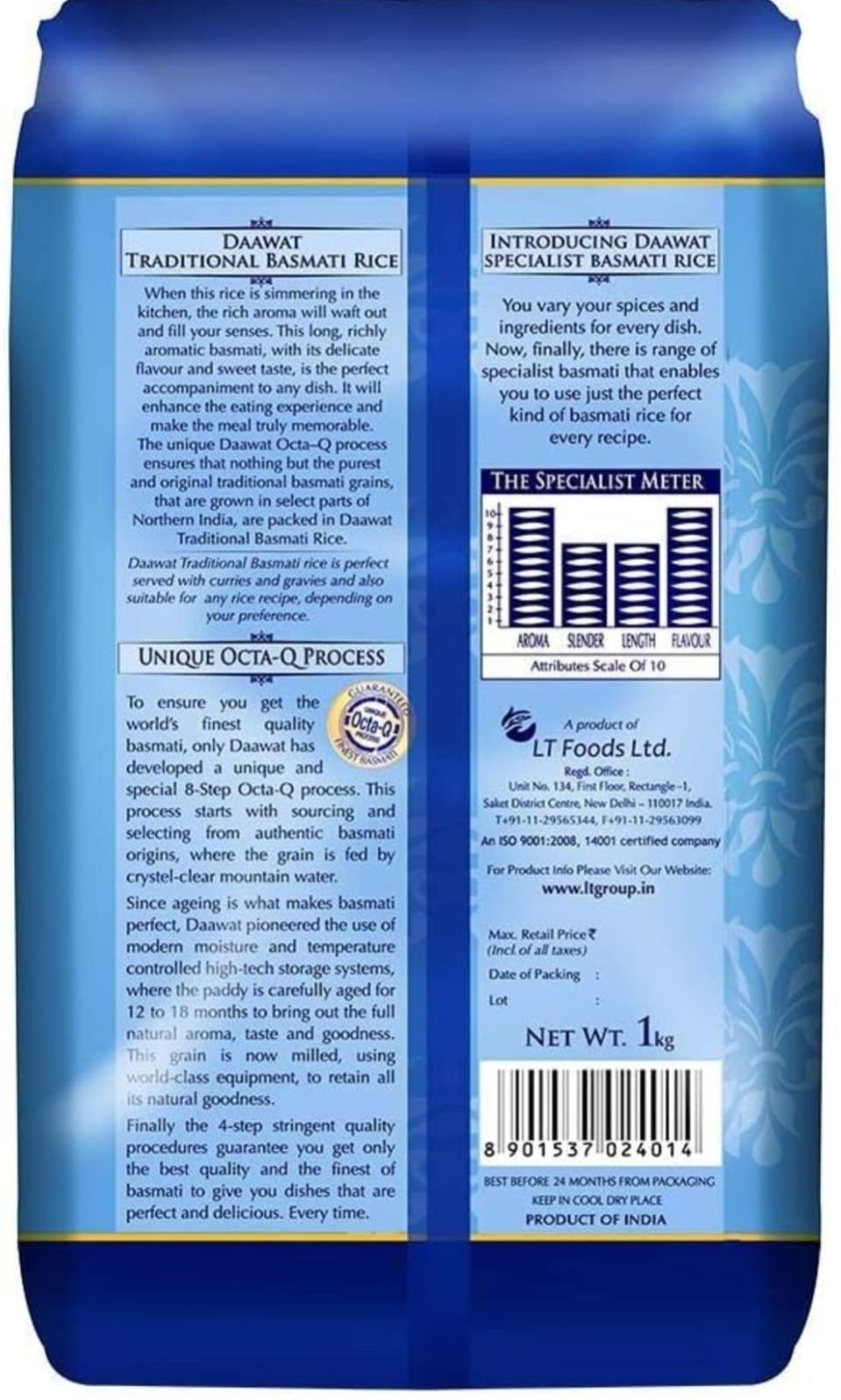 Daawat Traditional, Perfectly Aged Premium Basmati Rice with Rich Aroma, 1 Kg