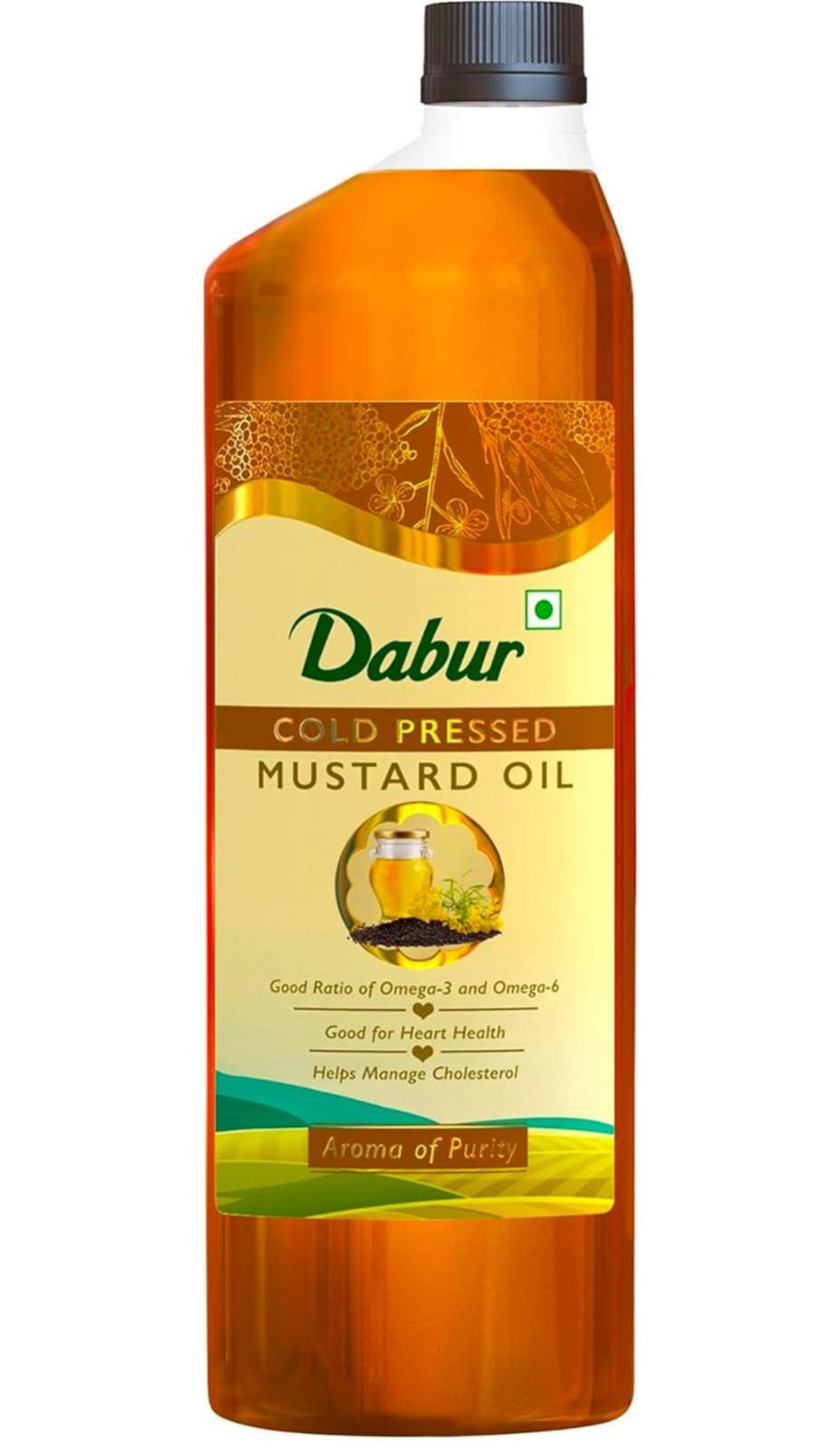 Dabur Cold Pressed Mustard Oil 1L | Healthy Cooking Oil | Goodness of Omega 3 & 6 | Perfect blend of Health, Taste & Aroma