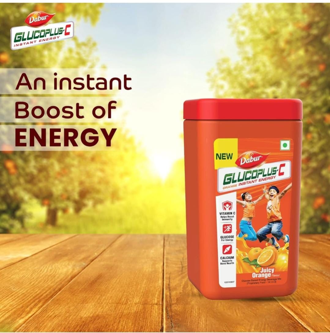 Dabur GlucoPlus-C Instant Energy Glucose Juicy & Tasty Orange Flavour Powder- 400g Jar