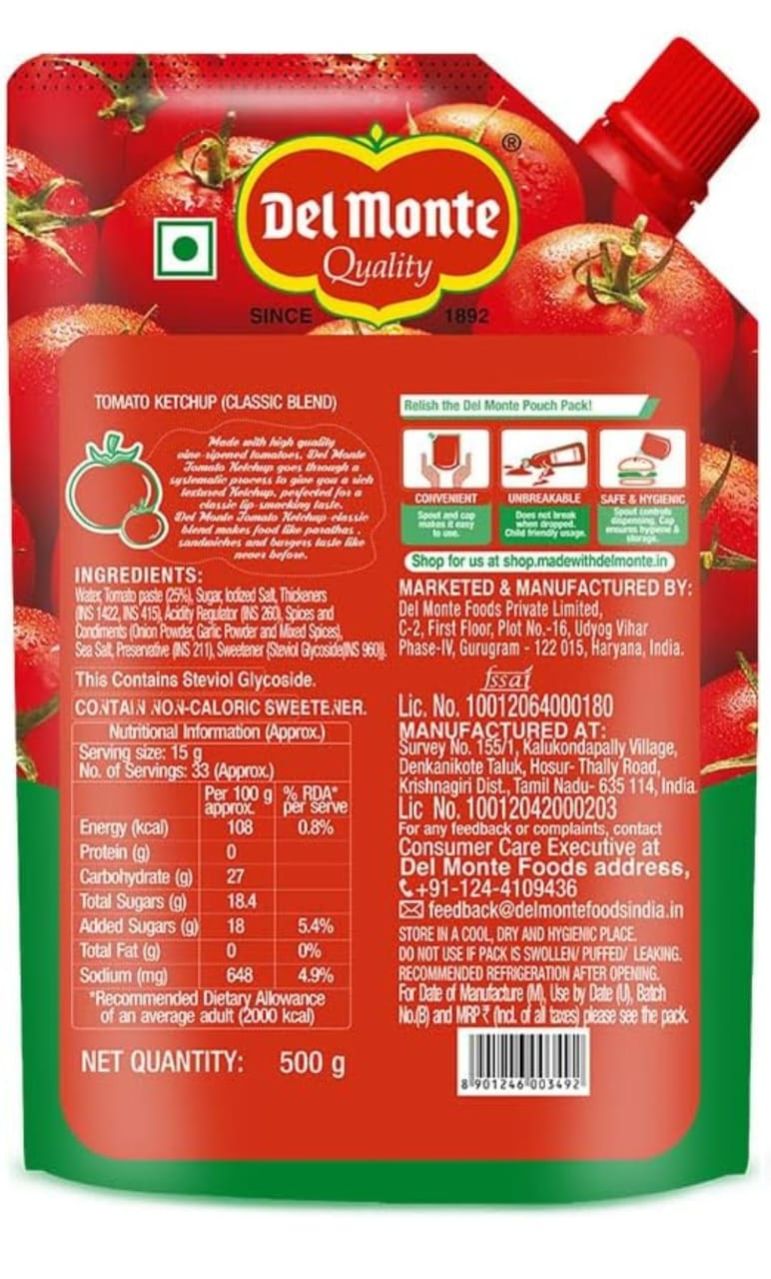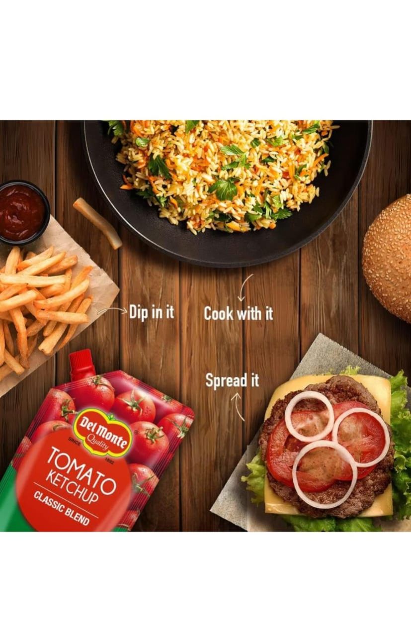Del Monte Tomato Ketchup uses Quality Vine Ripened Tomatoes. Each batch of Del Monte Tomato Ketchup is carefully processed with premium ingredients and under goes stringent quality checks to ensure product superiority. Like diversity of Indian cuisines, Del Monte Tomato Ketchup can be used diversely- as a condiment, ingredient or a dip in any of the cuisines