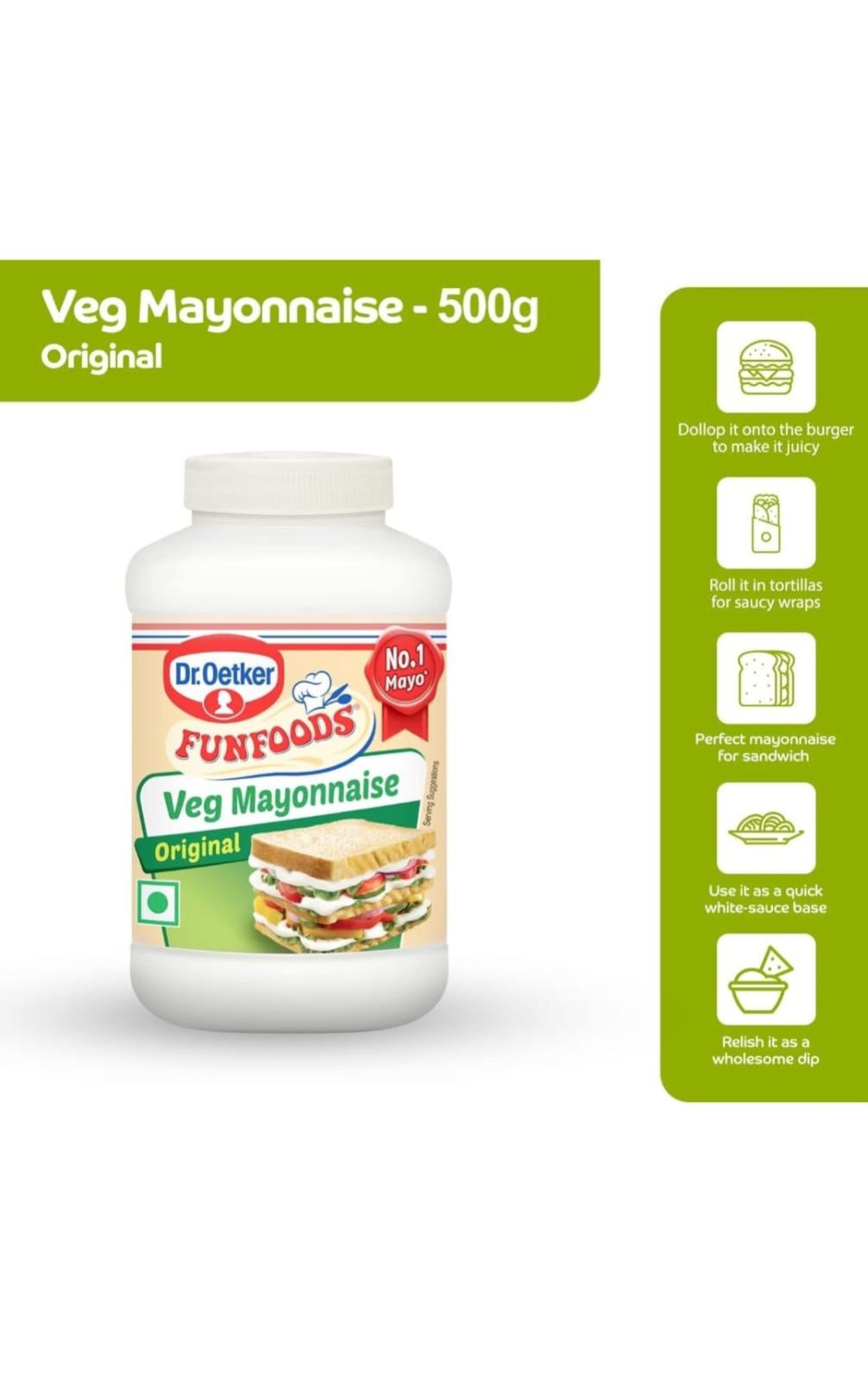 Dr. Oetker FunFoods Veg Mayonnaise, 500g, 100% Veg, Trans Fat Free | Profit and Grocery