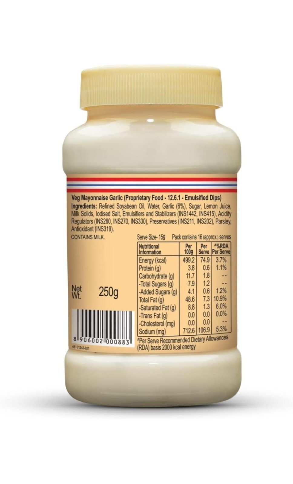 Dr. Oetker FunFoods Veg Mayonnaise Garlic, 250g, Trans Fat Free | Profit and Grocery