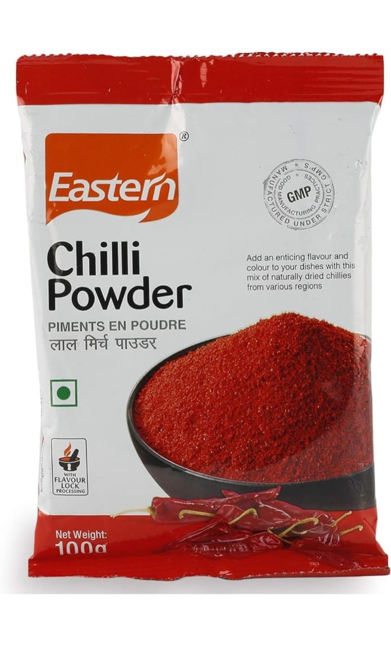 Experience the vibrant flavours and fiery heat of Eastern Chilli Powder, crafted from freshly ground top-grade red chillies. Elevate your culinary creations with this premium spice, carefully sourced and expertly blended to deliver exceptional taste and aroma. Regardless of whether you're a seasoned chef or a home cook, Eastern Chilli Powder is a must-have addition to your spice cabinet. This red chilli powder is made from handpicked, top-grade red chillies, ensuring unmatched quality and flavour. Each batch is carefully processed and ground to perfection, preserving the natural oils and pungency of the chillies. The result is a vibrant coloured powder with a strong aroma that instantly enhances the taste of your dishes. Eastern Chilli Powder is 100% natural and pure, free from any additives or preservatives. You can trust its authenticity and enjoy the true essence of red chillies in your cooking. It is a versatile spice that complements a variety of dishes, making it ideal for Indian cuisine. Let your taste buds explore the bold and exciting flavours Eastern Chilli Powder brings to your favourite recipes. Eastern Chilli Powder makes every meal a culinary adventure. Sprinkle a pinch of this flavourful spice over your curries and other dishes for a fiery flavour. Add it to marinades for a spicy twist, or use it to season your snacks and appetizers. The possibilities are endless, and the result is always a burst of flavour that leaves you craving for more. Eastern Chilli Powder comes in a convenient 100g pack, providing you with ample supply to experiment with new recipes and spice up your everyday cooking. Add it to your cart on Amazon now and let your culinary creativity soar.