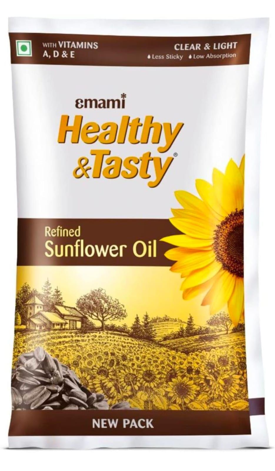 Emami Healthy and Tasty Refined Sunflower Oil Pouch, 1L | Profit and Grocery