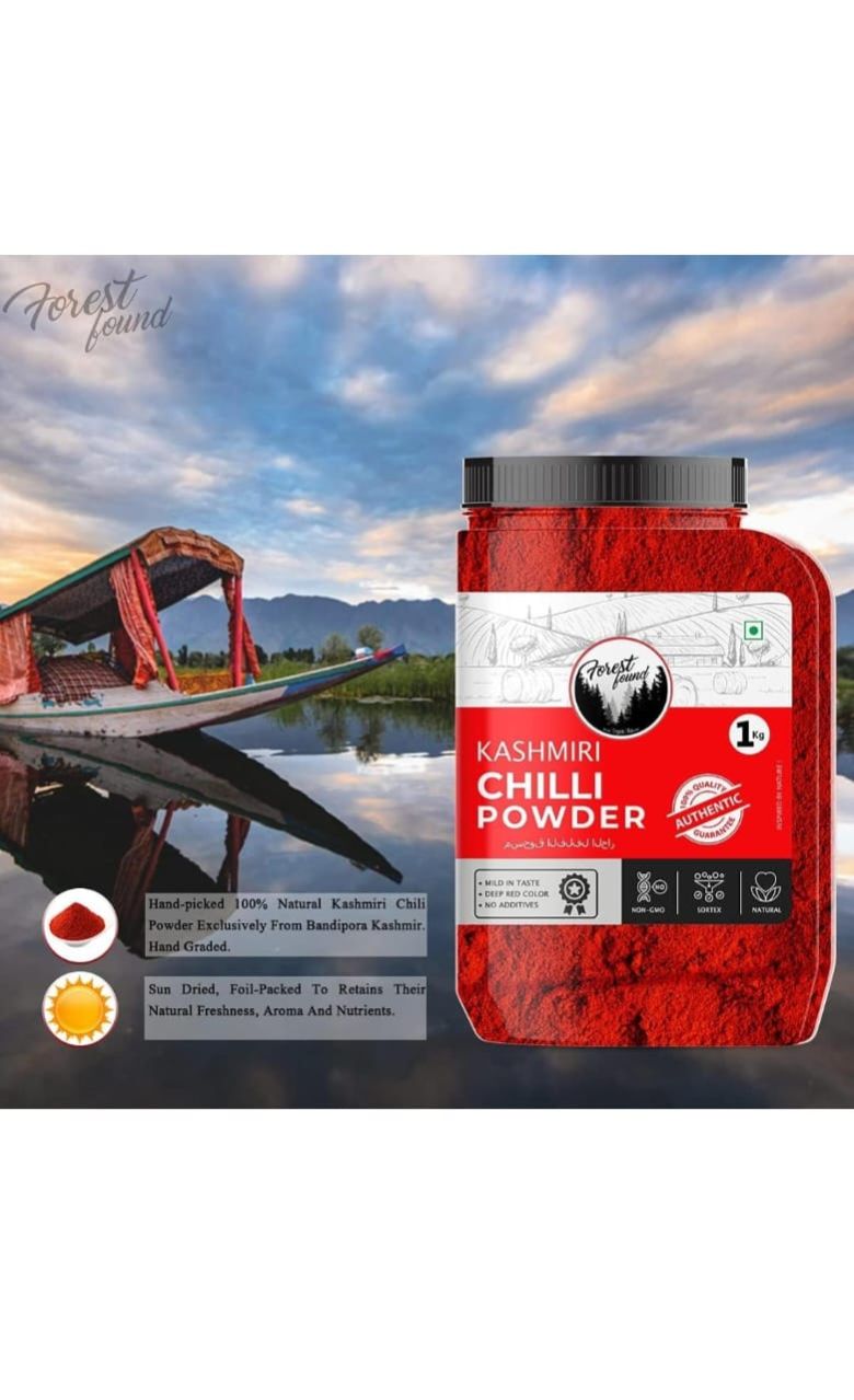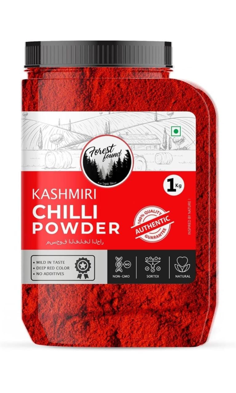Forest Found Kashmiri Red Chilli Powder | Lal Mirch |Pure And Ready To Use | 100% Authentic,Mild,Deep Red Color (1kg)
