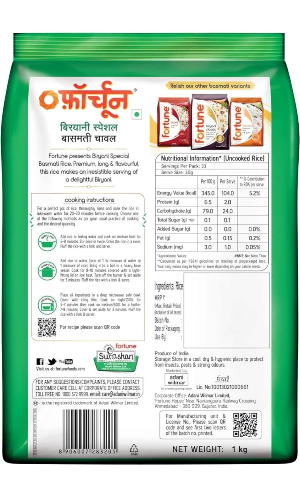 Fortune Biryani Special Basmati Rice, Extra long grain basmati rice, 1 KG | Profit and Grocery
