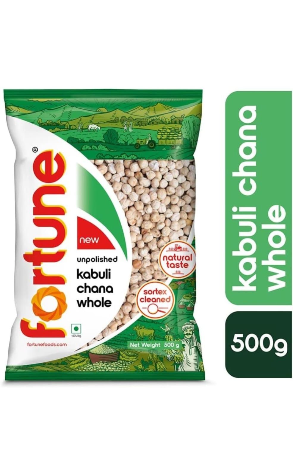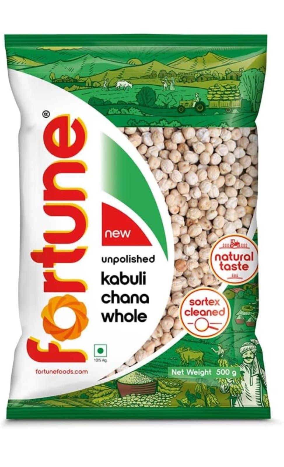 Fortune Kabuli Chana, 500 g, Unpolished and Sortex cleaned | Profit and Grocery