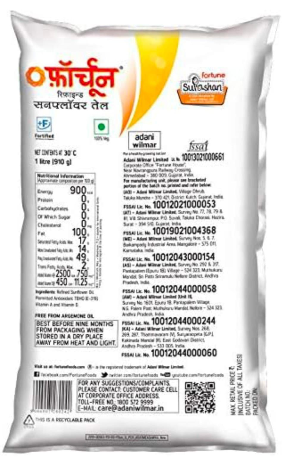 Fortune Sunlite Refined Sunflower Oil, 1L | Profit and Grocery