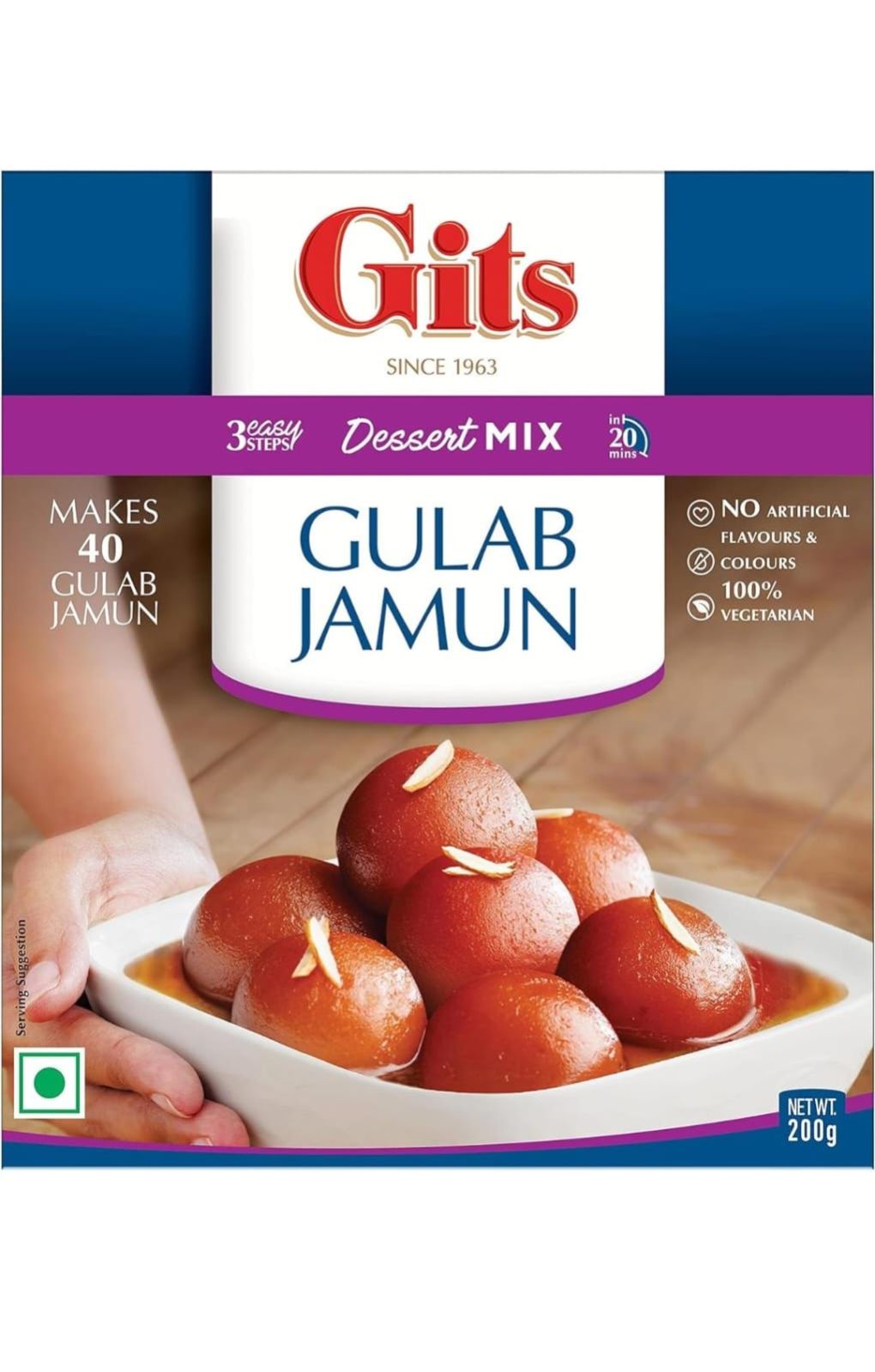 Gits Instant Gulab Jamun Dessert Mix, Makes 40 per Pack, Pure Veg, Delicious Indian Dessert and Mithai, 200g
