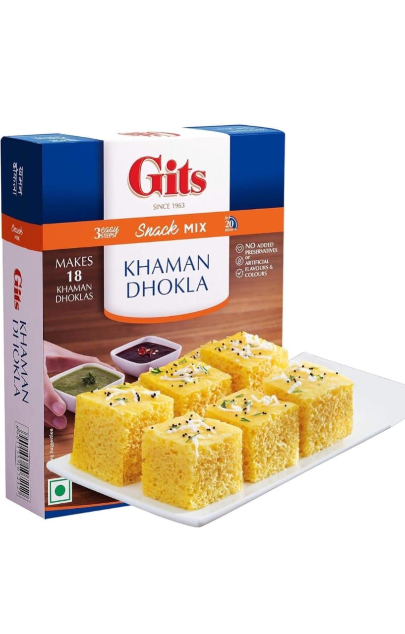 Gits Mix Khaman Dhokla is a famous traditional snack prepared from fermented chick pea batter. Khaman is basically a salty steamed cake made from chickpea flour. It is a typical Gujarati or Kutch snack, eaten for breakfast or dinner. It is high in protein and carbohydrates