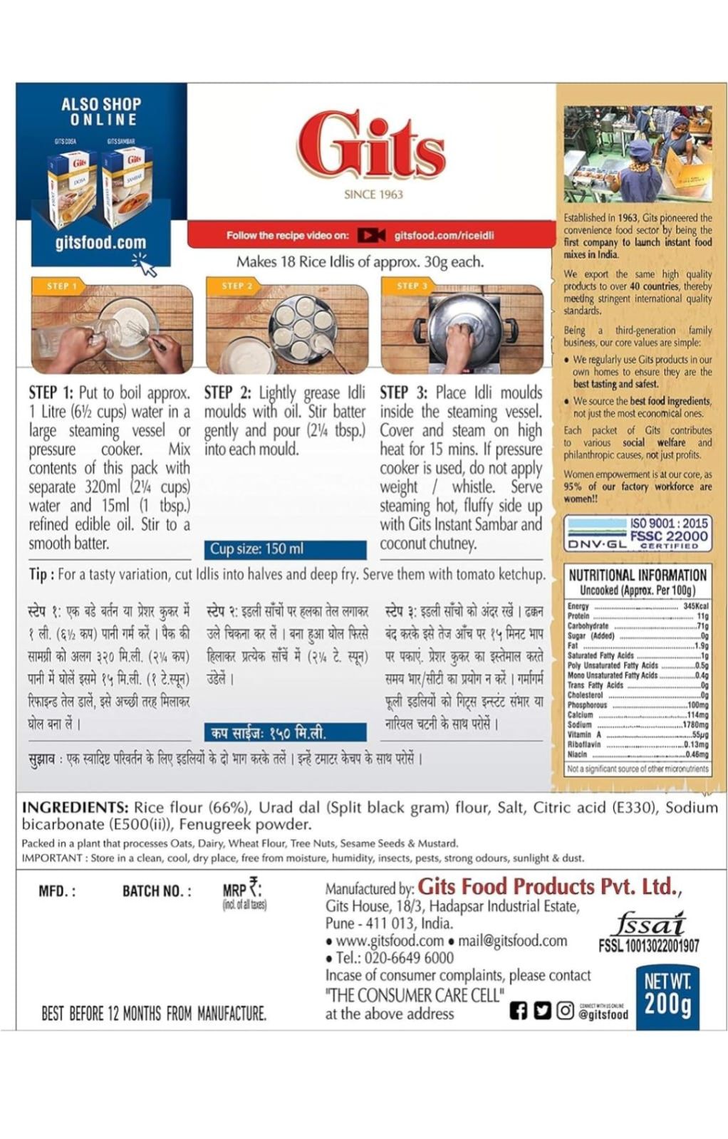 Gits Instant Rice Idli Breakfast Mix, 200g | Profit and Grocery