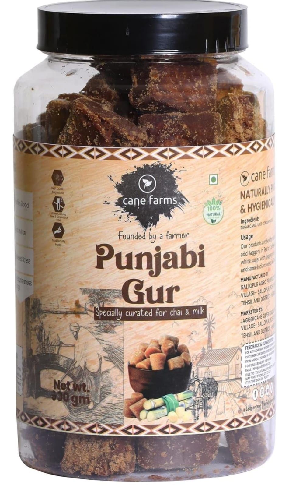 "Farmers First We work closely with farmers in Punjab, ensuring high-quality, addaltrant-free jaggery that's not just good for you but also supports the livelihoods of our farmers."