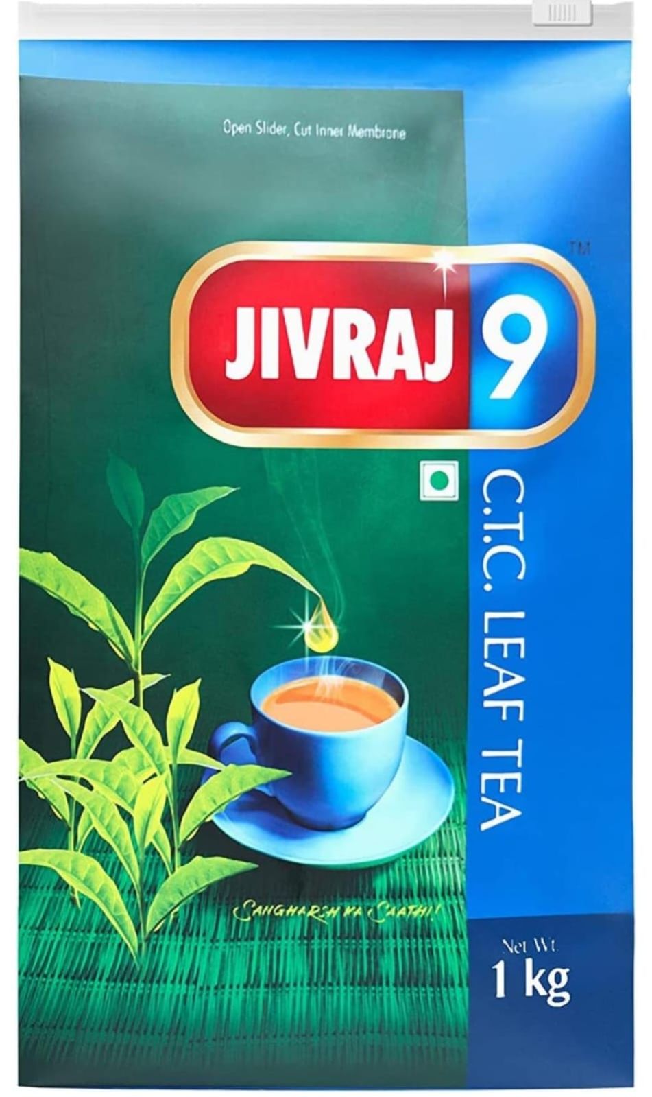 Jivraj 9 CTC Assam Leaf Tea - Pack of 1 Kg, Premium CTC Chai with Blended Leaves, Strong Aromatic & Quick Brewing Tea with Supreme Taste | Profit and Grocery