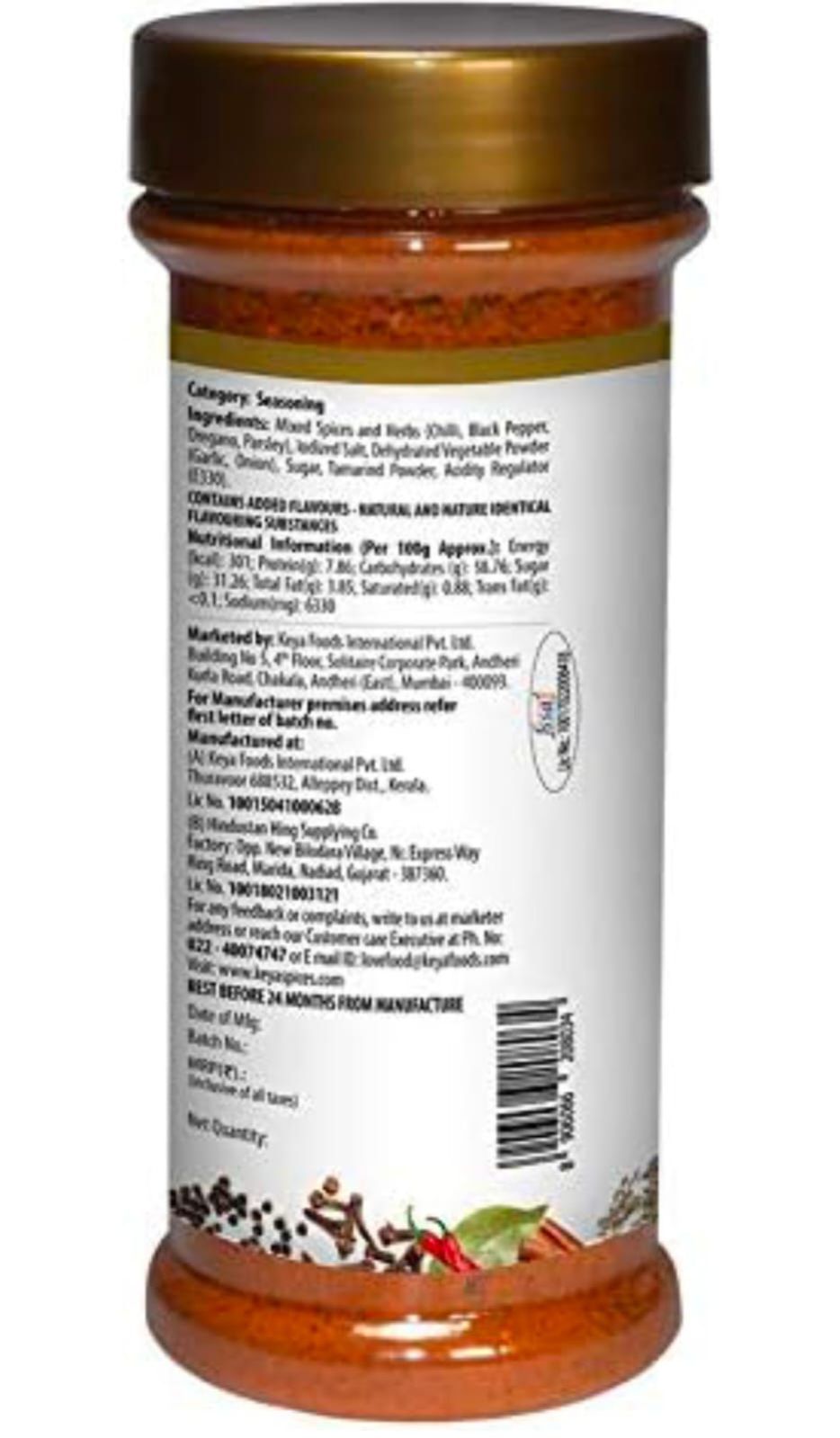 Keya piri piri masala is an exotic spice blend made from the choicest of ingredients that are hand picked in the right proportion, gently blended and coarse ground to unlock taste and aroma only while cooking. Expert spice blenders since 1935: Keya specialty spices are prepared from the house of "VKL seasonings Private Limited". Since our inception in Kerala in 1935, the spice capital of the world, we have evolved from being whole-spice traders to one of the India's largest seasoning and flavour solution provider across the globe. Experience in spices, combined with the latest quality standards in manufacturing (which involve 50 plus quality checks) helps us ensure that our products are word class in terms of purity, aroma, flavour and freshness.