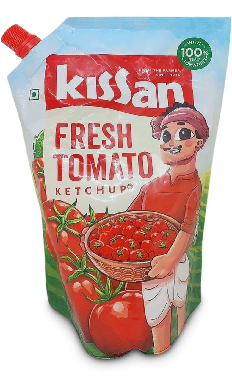 Kissan Fresh Tomato Ketchup is made with 100% real, naturally ripened fresh Tomatoes. The Tangy Tomato Ketchup is a must have at all homes and most loved by Indians! This sauce bottle and pouch packs can either be paired with fries or noodles or dhokla. This can be added to almost every dish to make them so much tastier. It’s an assured hero for all the snacks - be it samosas, pakoras, noodles or roti roll – a perfect ally for making wholesome and yummy food. Kissan Tomato ketchup helps healthy foods turn in yummy and tasty for the entire family. You can use this tomato ketchup as a tomato sauce or tomato chutney. Started in 1934, Kissan one of the most popular food brand in India. At Kissan, we keep the farmer's interest in mind along every step of the way. True to its name, Kissan works with over 8,000 farmers who grow tomatoes for Kissan Ketchup and sauce. The brand reassures mothers that they can turn any healthy but boring meal into a fun ketchup recipe with Kissan Ketchup and sauce ranges! The tangy red burst of tomatoes in ketchup and red chillies, will give you the sensorial delight of nature’s goodness