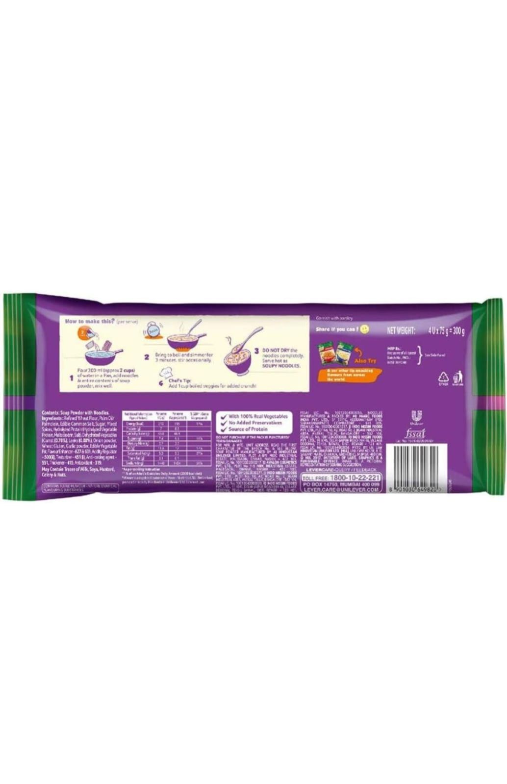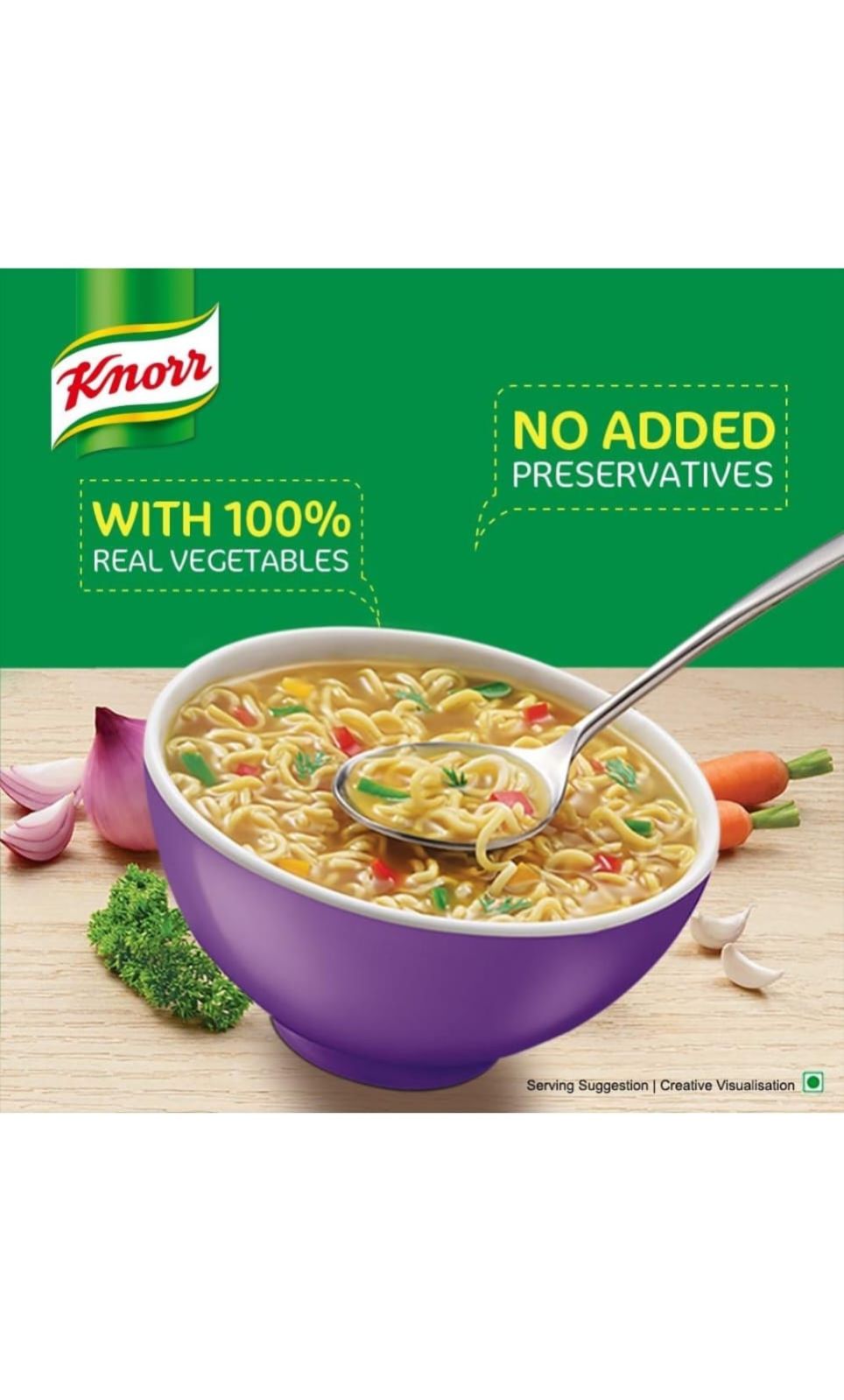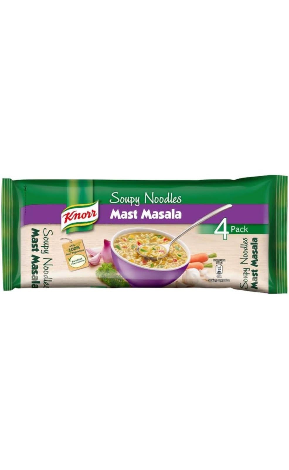 Knorr Soupy Mast Masala Noodles has the goodness of soup along with the fun of noodles, making it a fun evening snack for kids. Knorr Soupy Noodles are spicy and slurpy and make for a tasty meal in itself.At Knorr, we love flavour! Our Chefs have crafted Knorr Soupy Mast Masala Noodles with great care and precision, combining the finest ingredients in perfect combinations. Our Noodles are made with 100% real vegetables and are free of any added preservatives.Knorr Soupy Mast Masala Noodles are the perfect choice for making snack time fun and enjoyable. Your favourite noodles are available in three pack sizes - singles for a small meal and multipacks of 2 and 4 for a family experience. Knorr Soupy Noodles - Khake Peeyo Ya Peeke Khao!Now also enjoy your favourite instant noodles in exciting Chinese flavours - Knorr Chinese Schezwan & Knorr Hot & Spicy Noodles.About Knorr:Just like you, we love everything about food, because no delicious meal is cooked without love. Love for carefully selected ingredients, flavours and spices, or the aroma of dinner wafting through your home. Love for the people you feed everyday; your family and friends, relatives and guests, the people that matter to you the most. With Knorr as your cooking partner, you can serve your loved ones nutritious and flavourful meals at home.