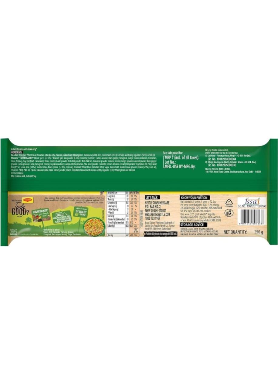 MAGGI Nutri-licious Veg Atta Masala Noodles, Instant Noodles with 20 Spices & Herbs, Source of Fibre & Iron, Atta Noodles with Appetizing Aroma & Delicious Taste, 290 grams