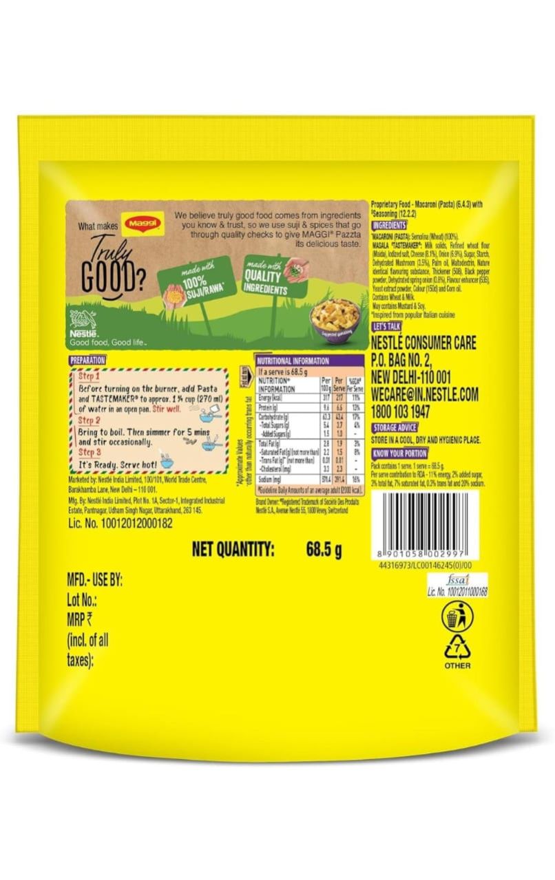 MAGGI Pazzta Mushroom Penne Pasta, Delicious Italian Style Instant Pasta Made with 100% Suji & Quality Ingredients, 68.5g | Profit and Grocery