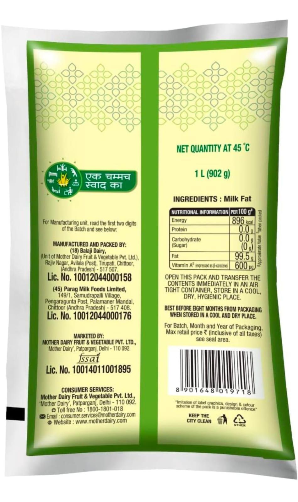 Mother Dairy Cow Ghee Pouch, 1L | Profit and Grocery