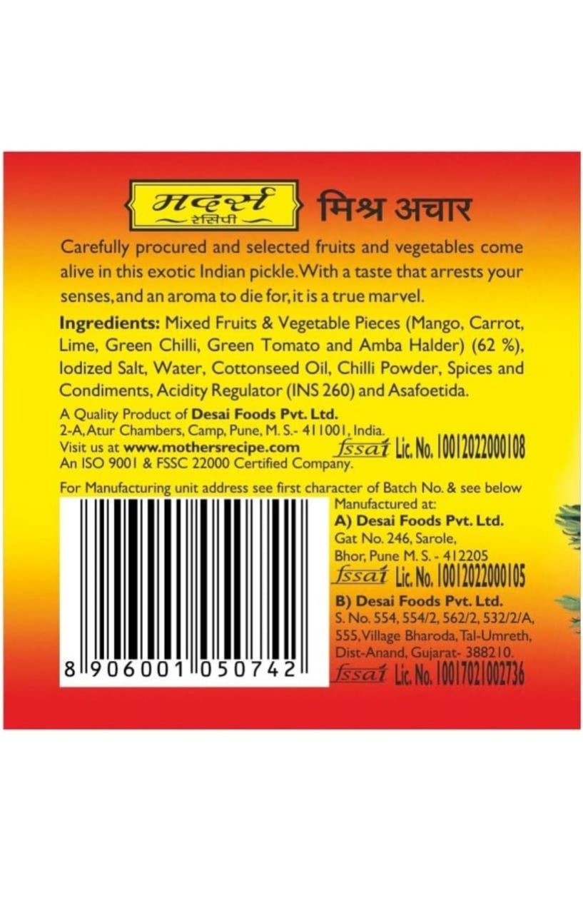 Mother's Recipe Mixed Pickle (Roi) Jar, 1000 g