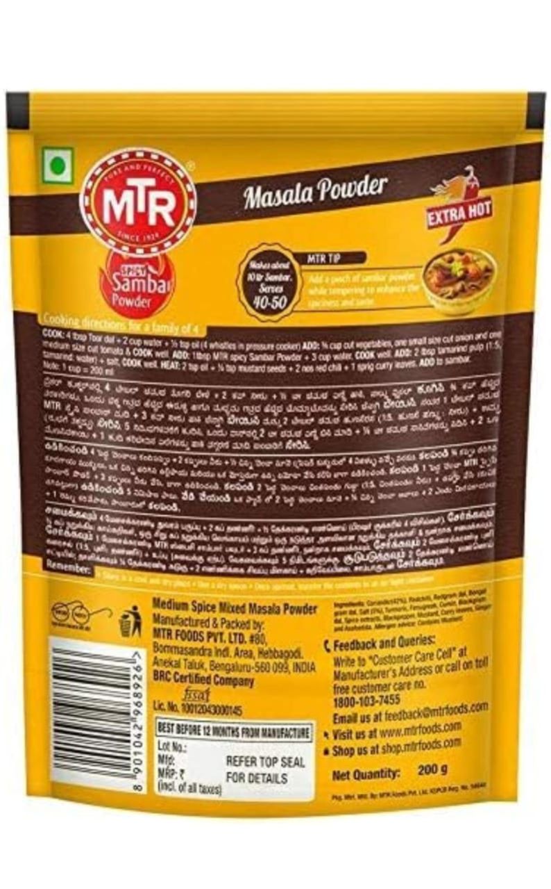 MTR Spicy Sambar Masala Powder 200g | Profit and Grocery