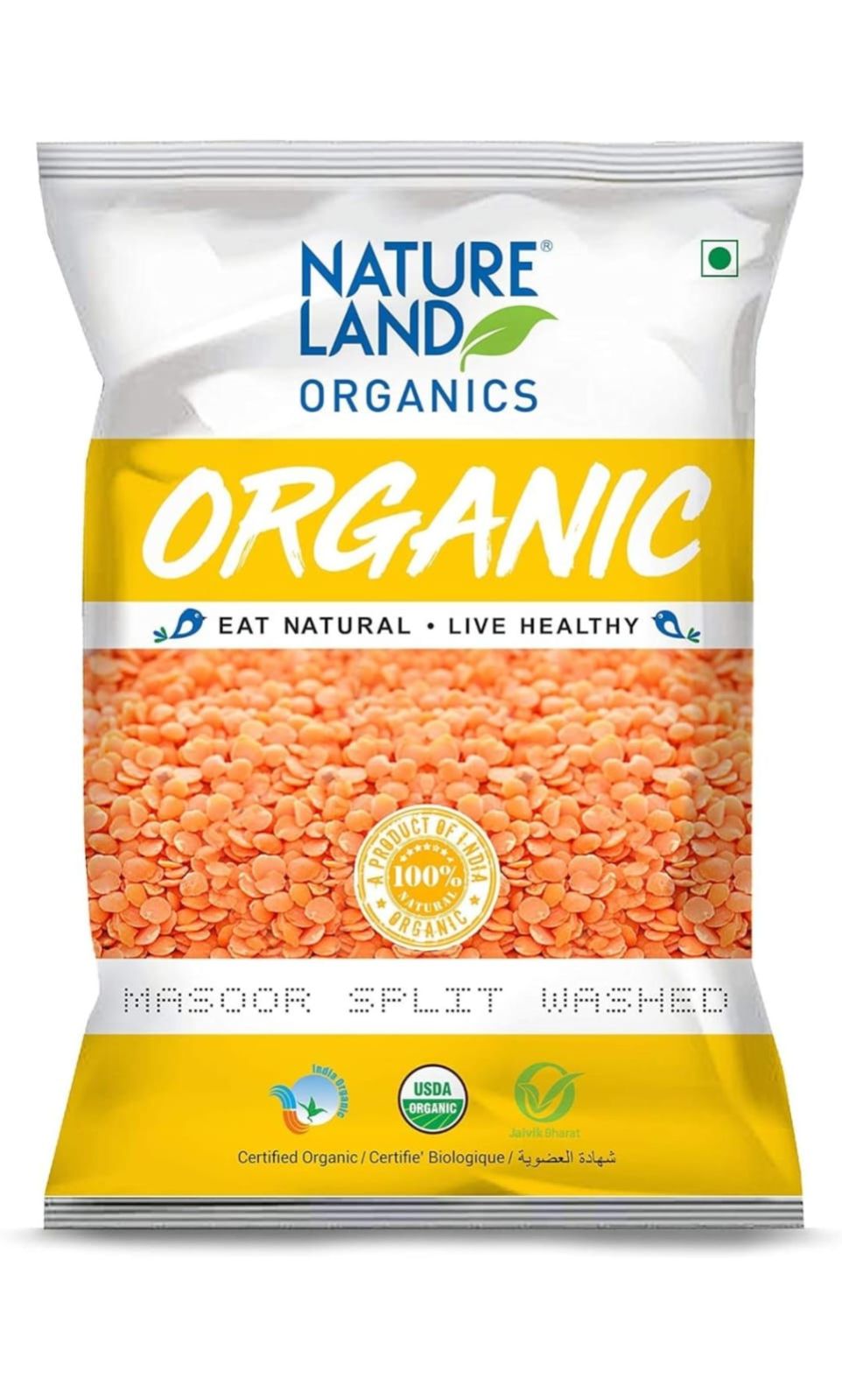 Also known as ‘masoor ki dal’, is used in a variety of ways- one can relish it with rice, rotis and even bread. Or it can simply be used as a condiment in soups. Natureland Organic foods masoor dal is processed from organic masoor whole by removing the husk (outer skin) from it and splitting it in two parts, it is machine cleaned and handpicked, before packing to ensure its purity and hygiene, which is healthier, tastier and cooks uniformly.