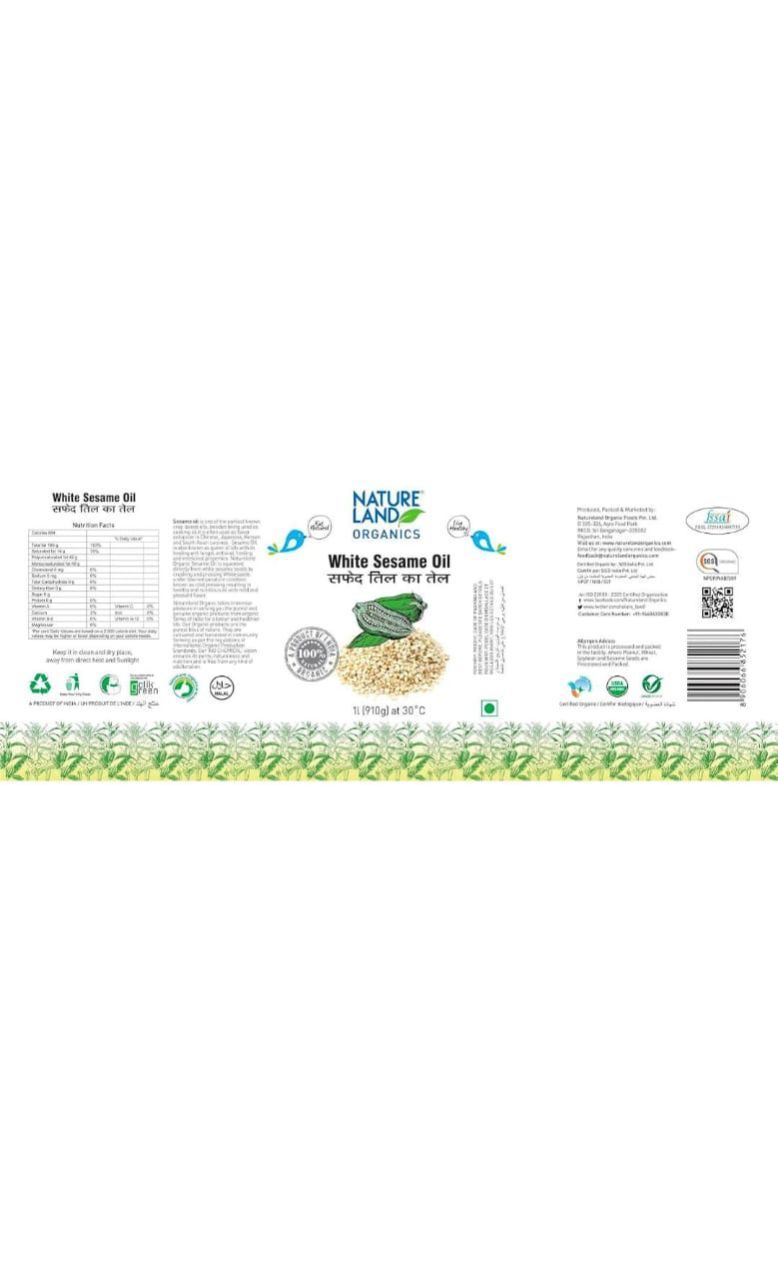 Natureland Organics White Sesame/Til Oil 1ltr - Cold Pressed | Profit and Grocery