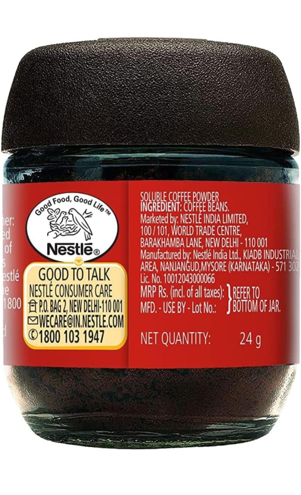 NESCAFE, world’s favourite instant coffee brand, brings to you rich and aromatic coffee in the form of NESCAFE Classic Instant Coffee, that will take your coffee experiences to the next level. The unmistakable flavour of NESCAFE Classic is what makes this signature coffee so loved all over the world. Start your day right with the first sip of this 100% pure coffee and let the bold taste and rich aroma of NESCAFE Classic Instant Coffee awaken your senses to new opportunities. With over 75 years of experience & working with coffee farmers to help them grow more sustainable coffee through improved crop techniques, we deliver fresh coffee beans produced by the best selecting, roasting and blending methods. Usage: Follow the instructions on the back of the pack and mix the coffee powder with hot or cold milk to get your instant coffee at home. Storage Recommendation: Store the product in a cool, dry and hygienic place. To ensure lasting freshness, close the lid tightly after every use. Always use a dry spoon. Gluten & Lactose-Free | Contains Caffeine