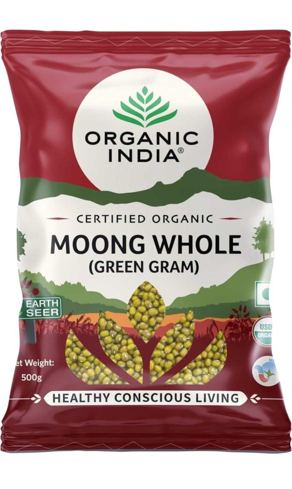 ORGANIC INDIA Rich in Proteins & Dietary Fiber, Delicious in Taste Moong Whole (Green Gram) 500gm