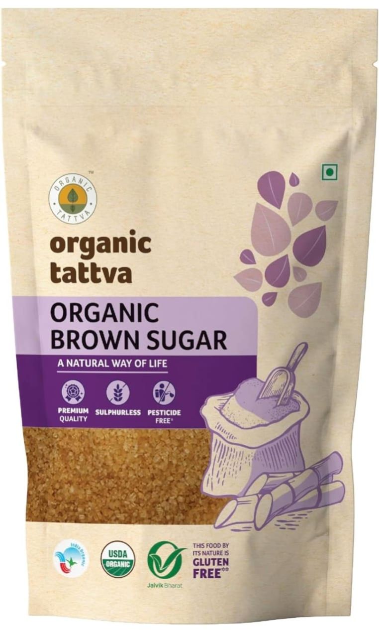 Organic Tattva All Natural Brown Sugar, Zero Chemicals, Organically Processed, from Freshly Squeezed Sugar Cane Juice, and Enriched with Essentials Nutrients (1 Kg, Pouch) | Profit and Grocery