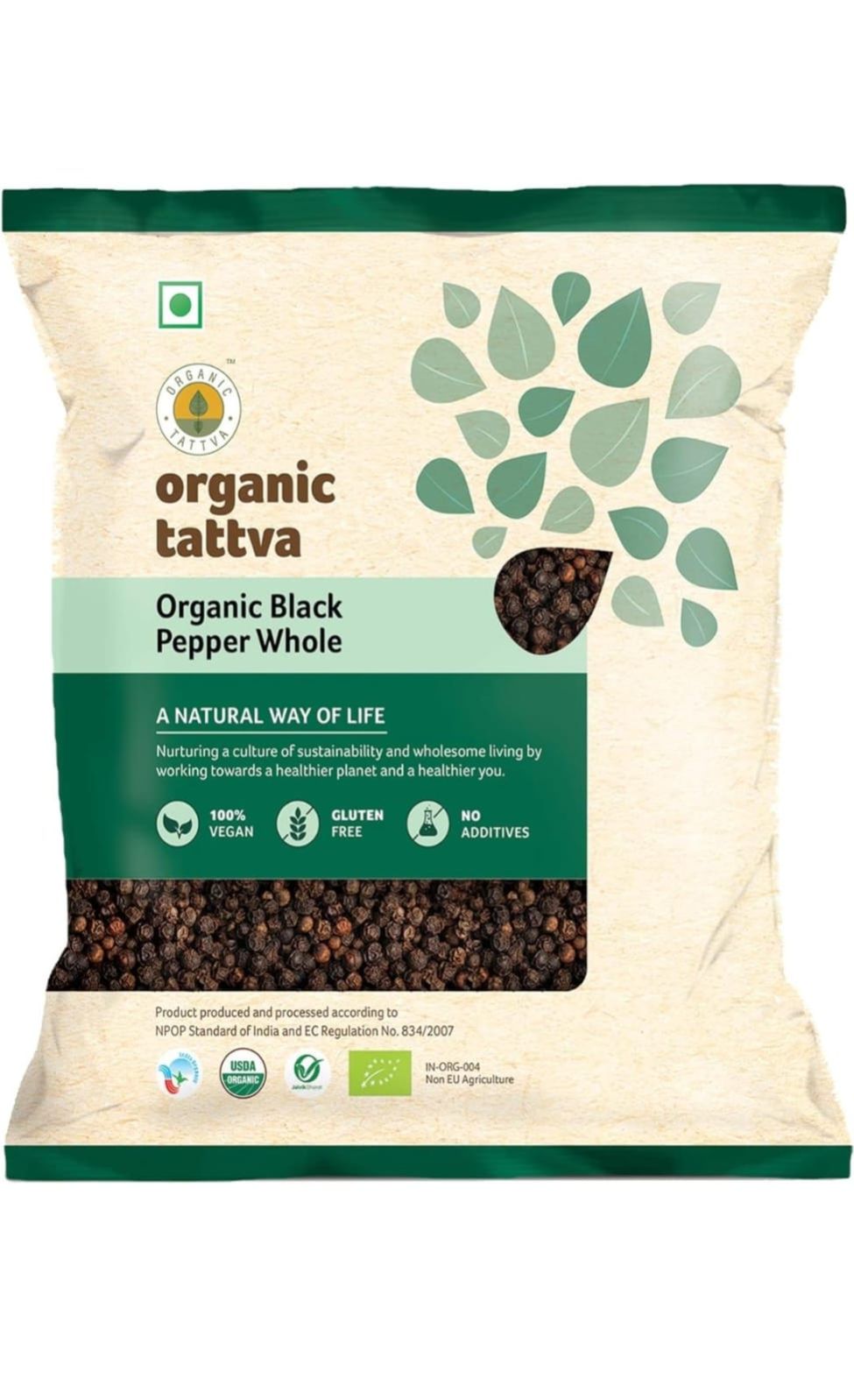 Organic Tattva, Organic Gluten Free Black Pepper/Kali Mirch - 100G | Naturally Processed, from Farm Picked Fresh Natural Seeds, No Artificial Additives