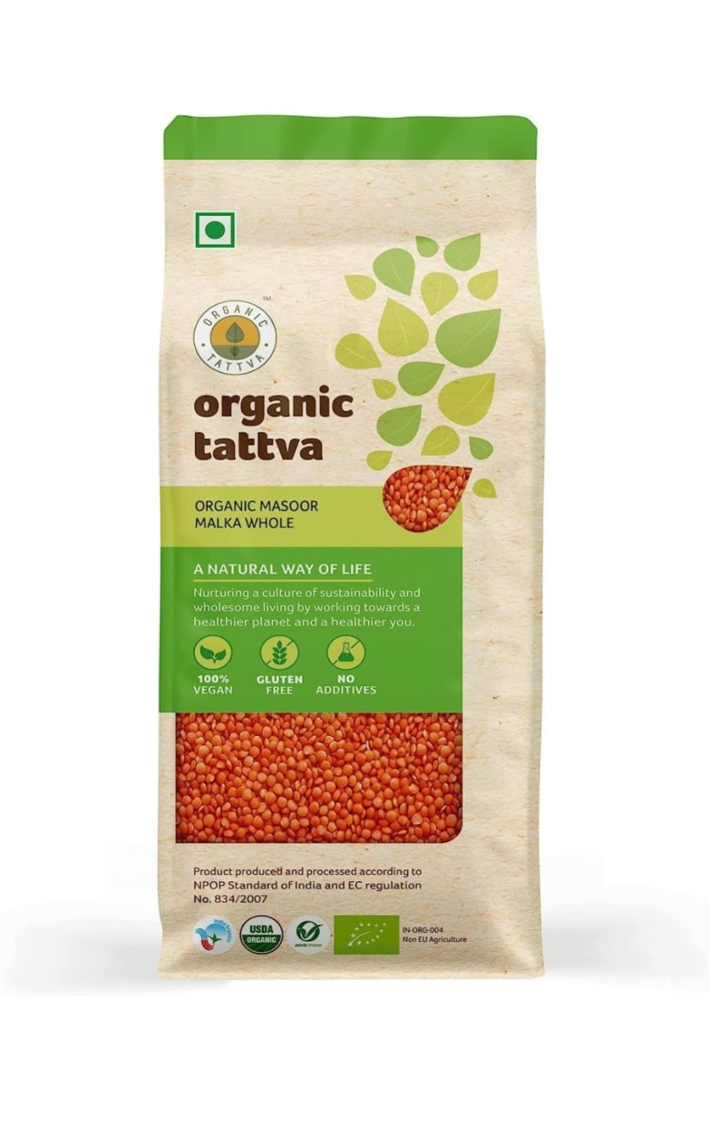 Organic Tattva, Organic Masoor Malka Whole, 500g | 100% Vegan, Gluten Free and NO Pesticides