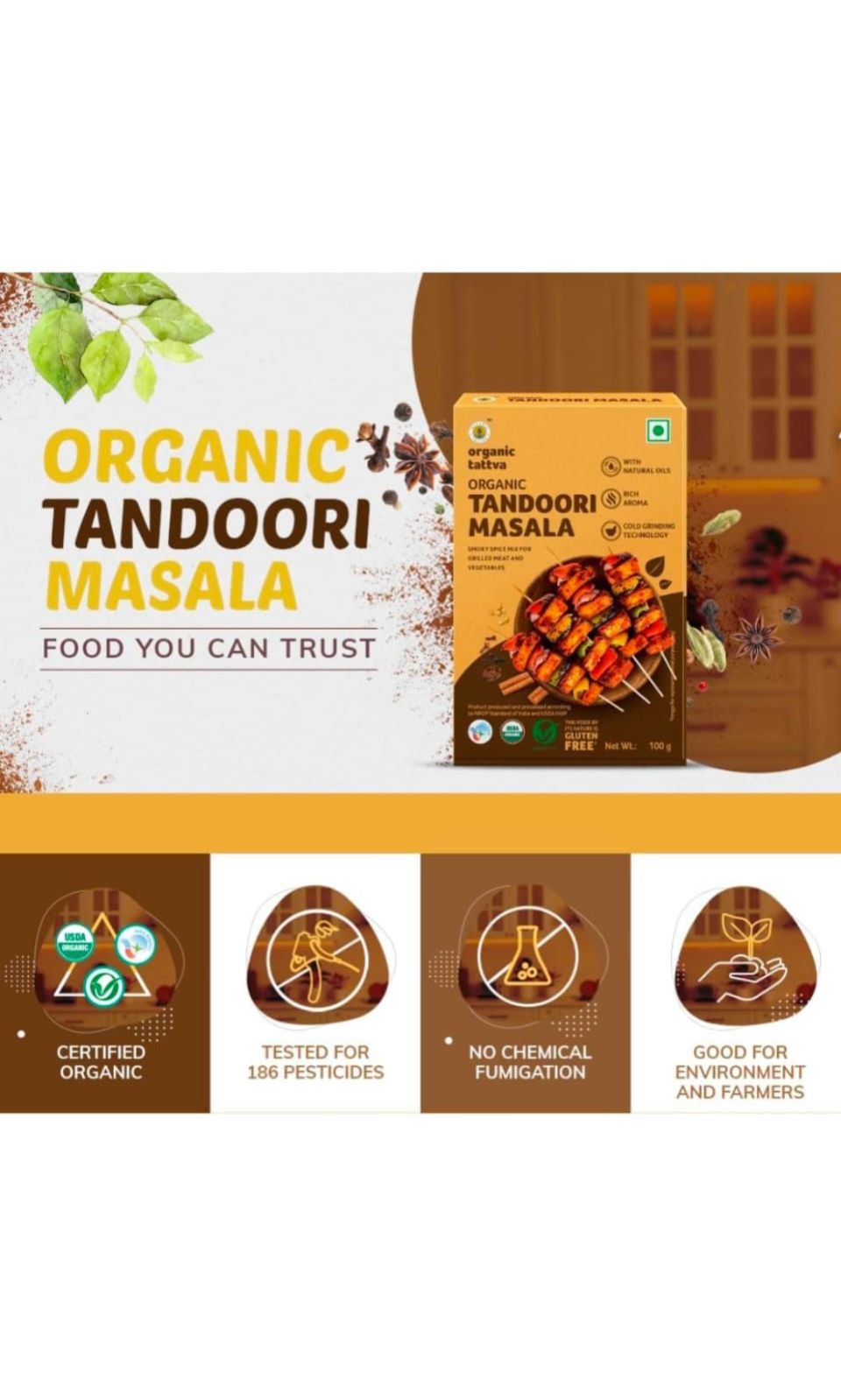 Organic Tattva, Organic Tandoori Masala Powder - 100 Gram | No Artificial Additives and NO Pesticides
