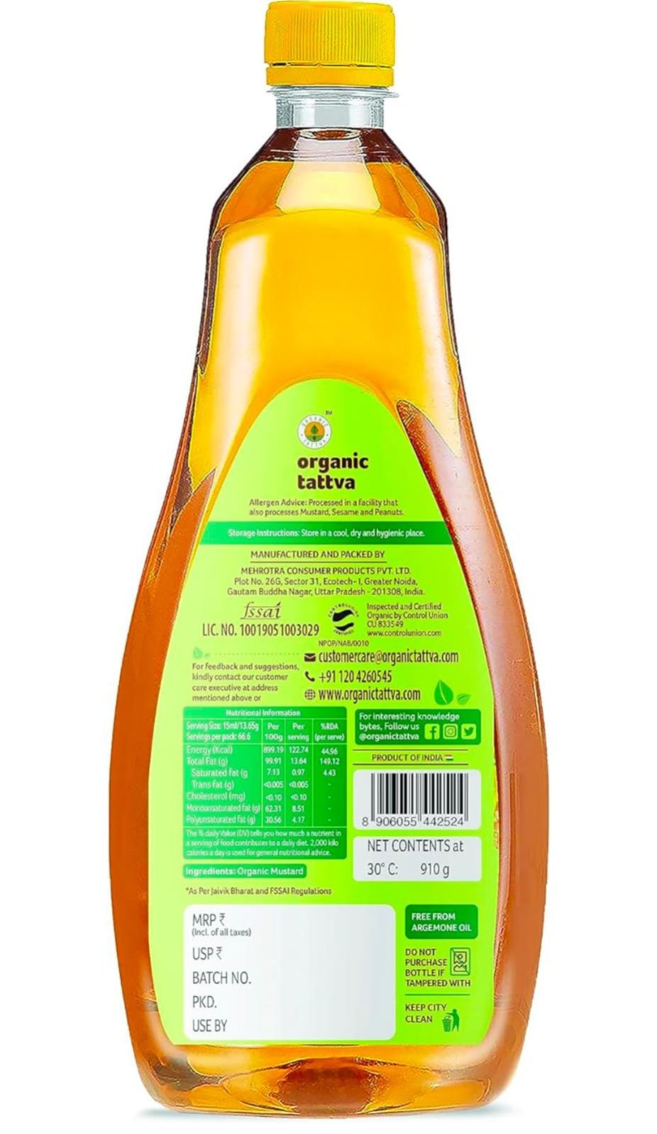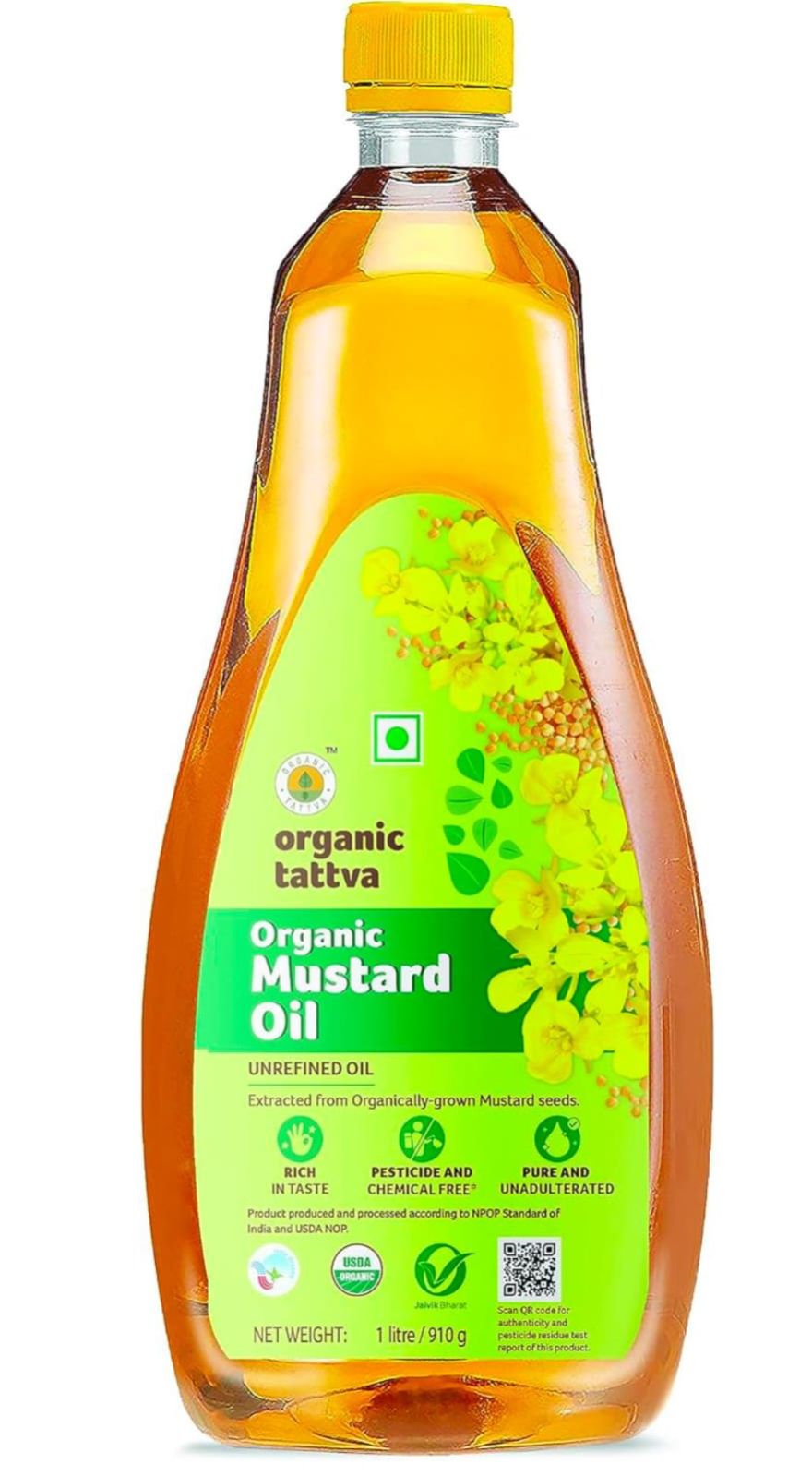 Organic Tattva, Organic Unrefined Mustard/Sarso Cooking Oil (1L) | Profit and Grocery