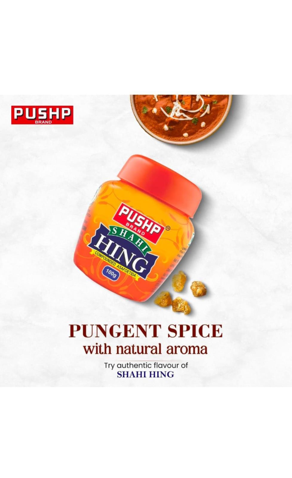 Pushp Brand Asafoetida Hing Jar (100g) - Strongest Compounded Pure Hing Powder