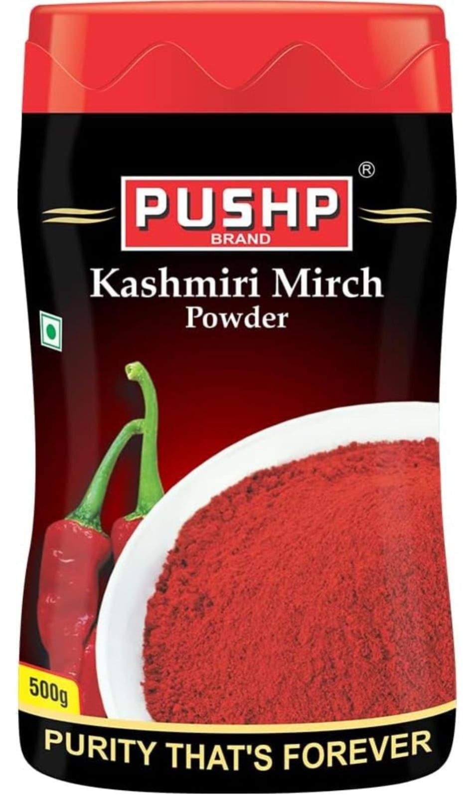 Pushp Brand Kashmiri Red Chilli Powder 500g Jar (Pack of 1)
