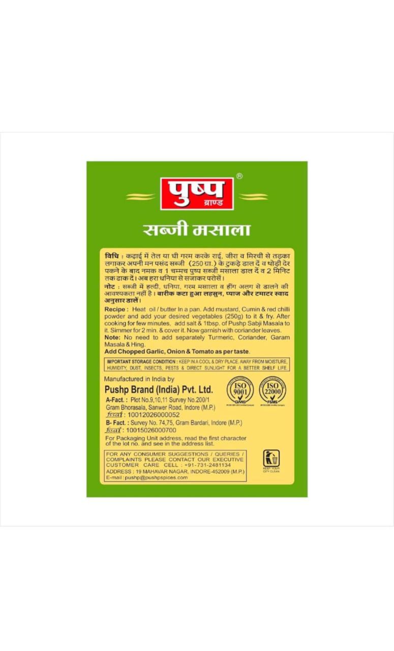 Pushp Brand Sabji Masala Box (Pack of 1, 100g Pack)