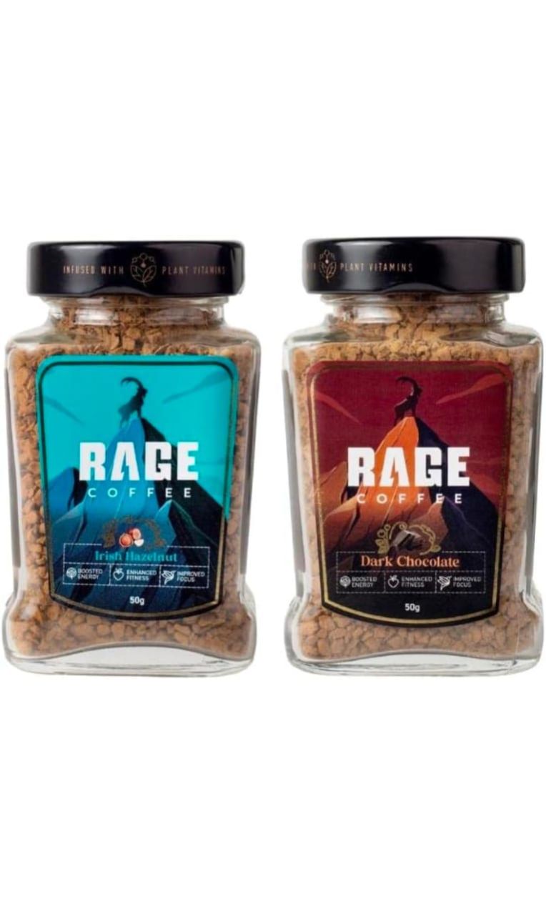 Rage Coffee Combo Pack of 2 Flavoured Instant Ground Coffee - 50 gms each of Irish Hazelnut & Dark Chocolate, Glass Bottle | Profit and Grocery