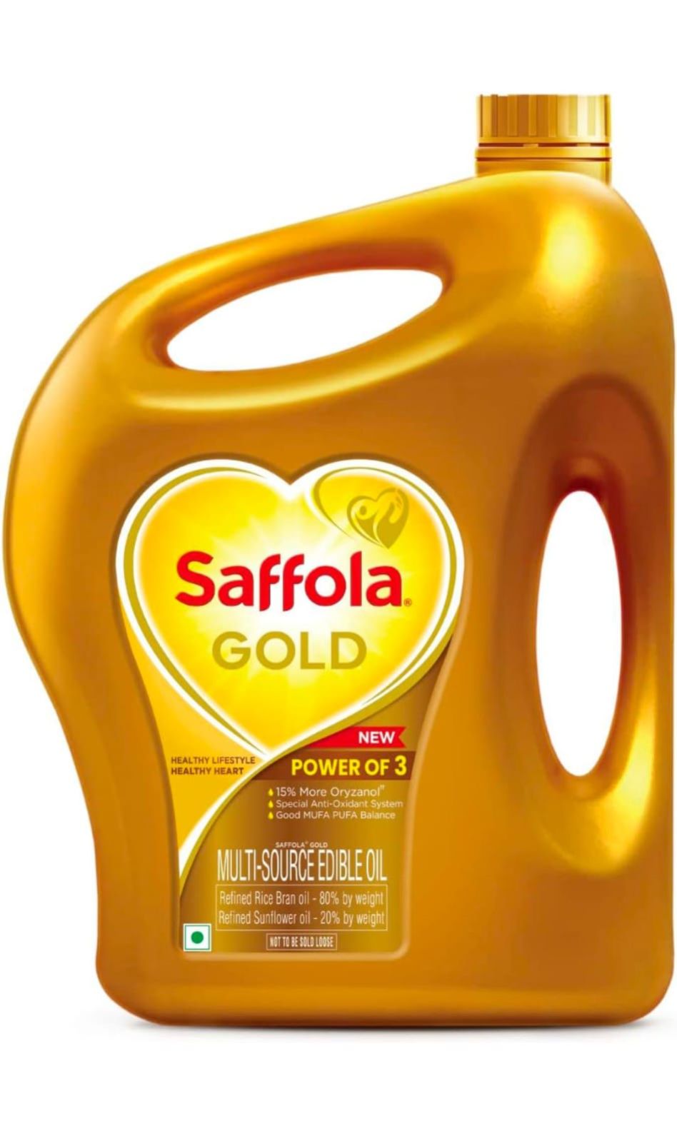 Saffola Gold Refined Oil|Blend of Rice Bran Oil & Sunflower Oil|Cooking Oil| Pro Healthy Lifestyle Edible Oil 5L Jar +1L Pouch | Profit and Grocery