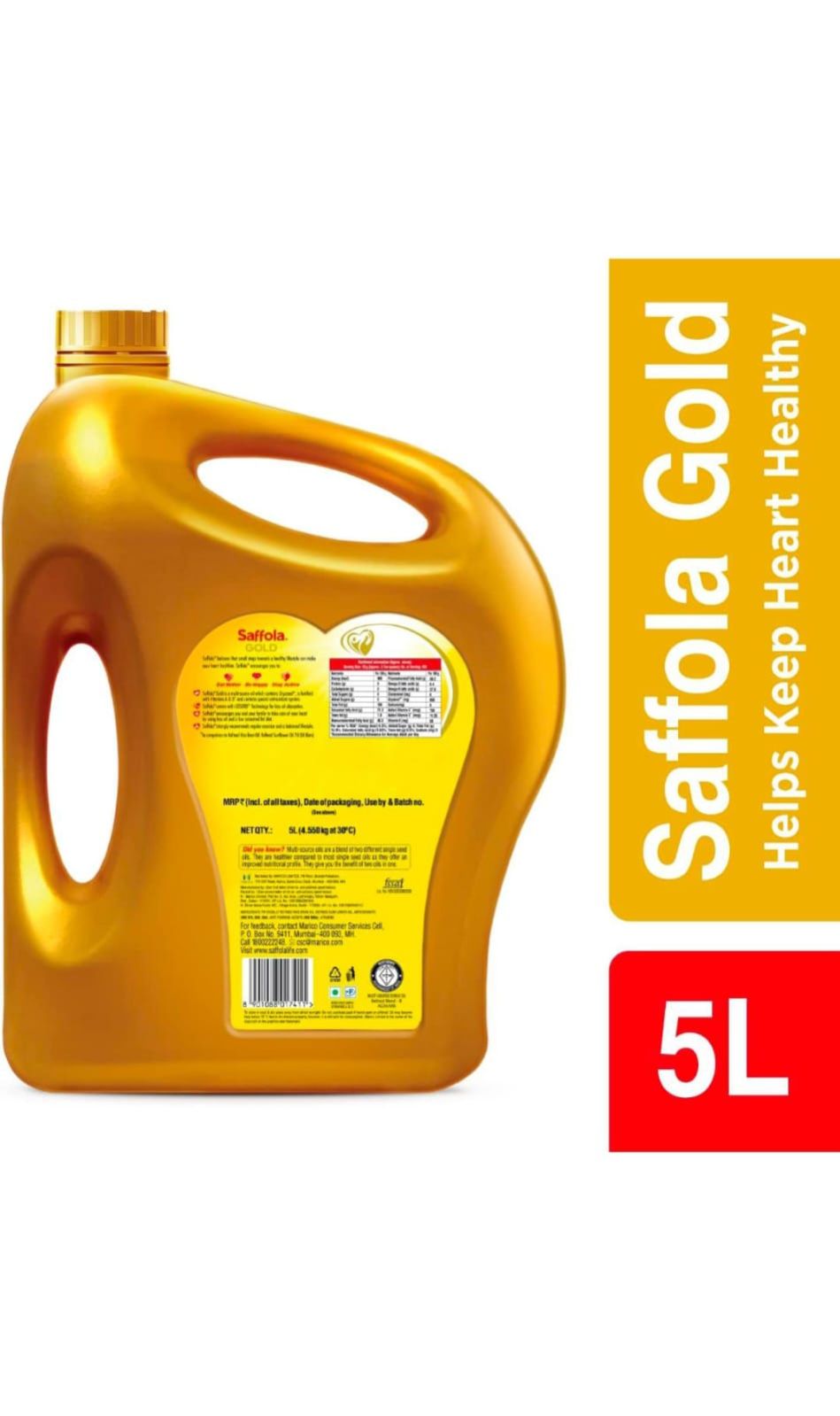 Saffola Gold Refined Oil|Blend of Rice Bran Oil & Sunflower Oil|Cooking Oil| Pro Healthy Lifestyle Edible Oil 5L Jar +1L Pouch