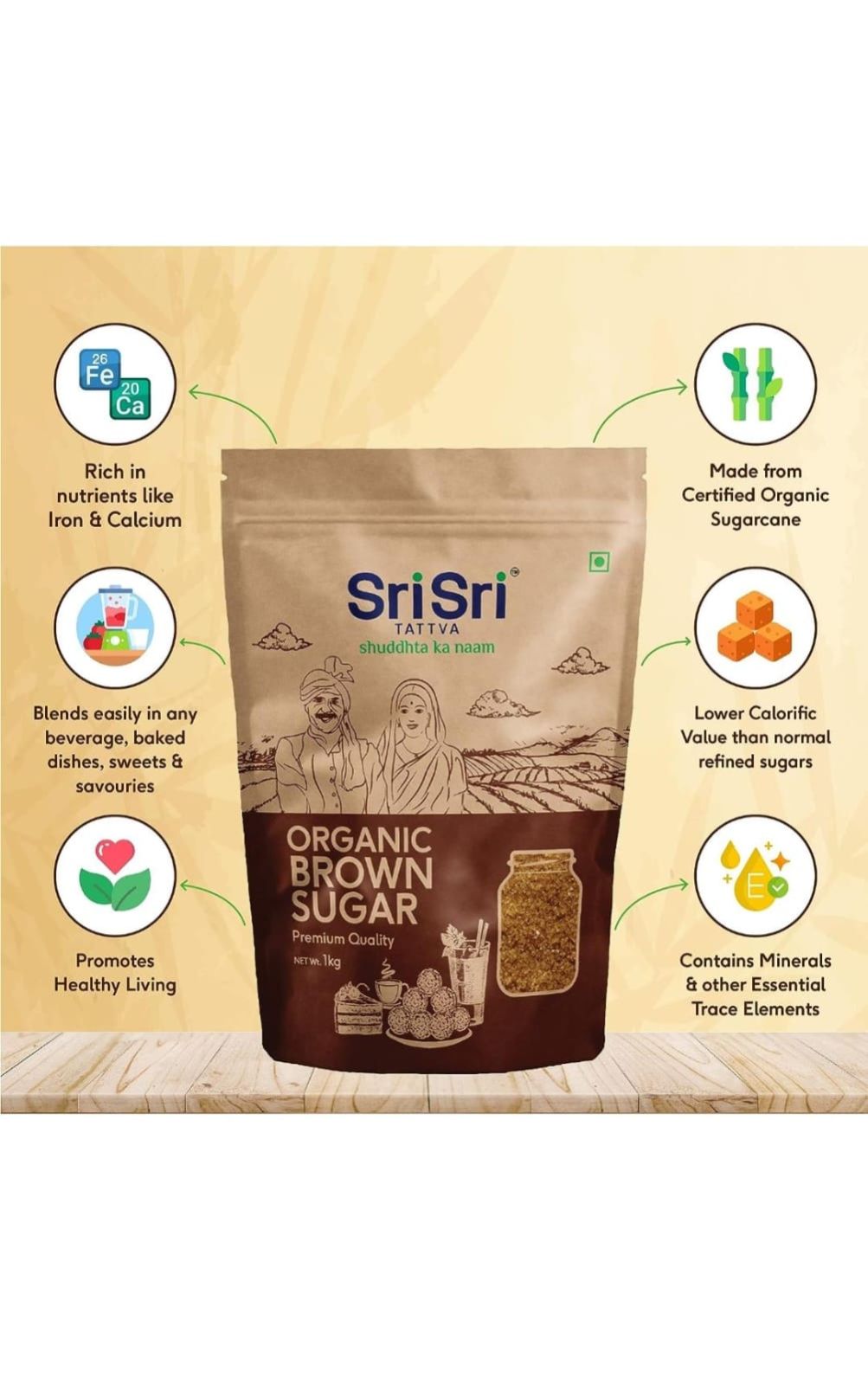Sri Sri Tattva Organic Brown Sugar - 1kg (Pack of 1) - Natural & Refined Cane Sugar - Prime Quality - Rich in Minerals | Profit and Grocery